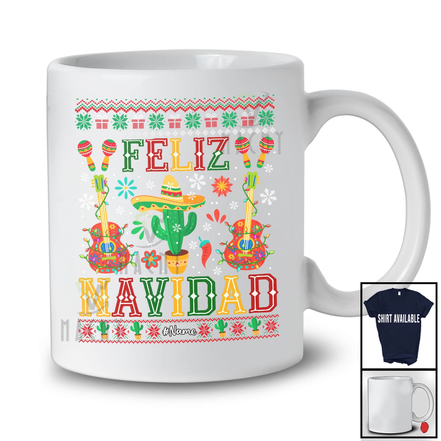 Personalized Feliz Navidad; Fantastic Christmas Sweater Cactus Guitar; Custom Name Mexican T-Shirt. This cotton t-shirt is a durable staple product with a classic fit. One of the most popular items, it has a relaxed style made for everyday and casual wear.