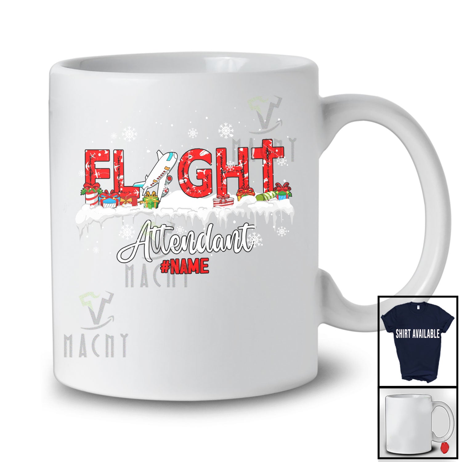 new MacnyStore - Personalized Flight Attendant; Amazing Christmas Plane Snowing; Custom Name Flight Attendant Santa T-Shirt – Macnystore
