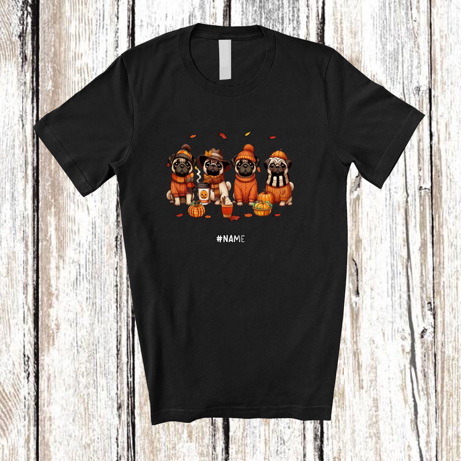 Personalized Four Pug Fall Leaves Pumpkin; Lovely Thanksgiving Pug Owner; Family T-Shirt