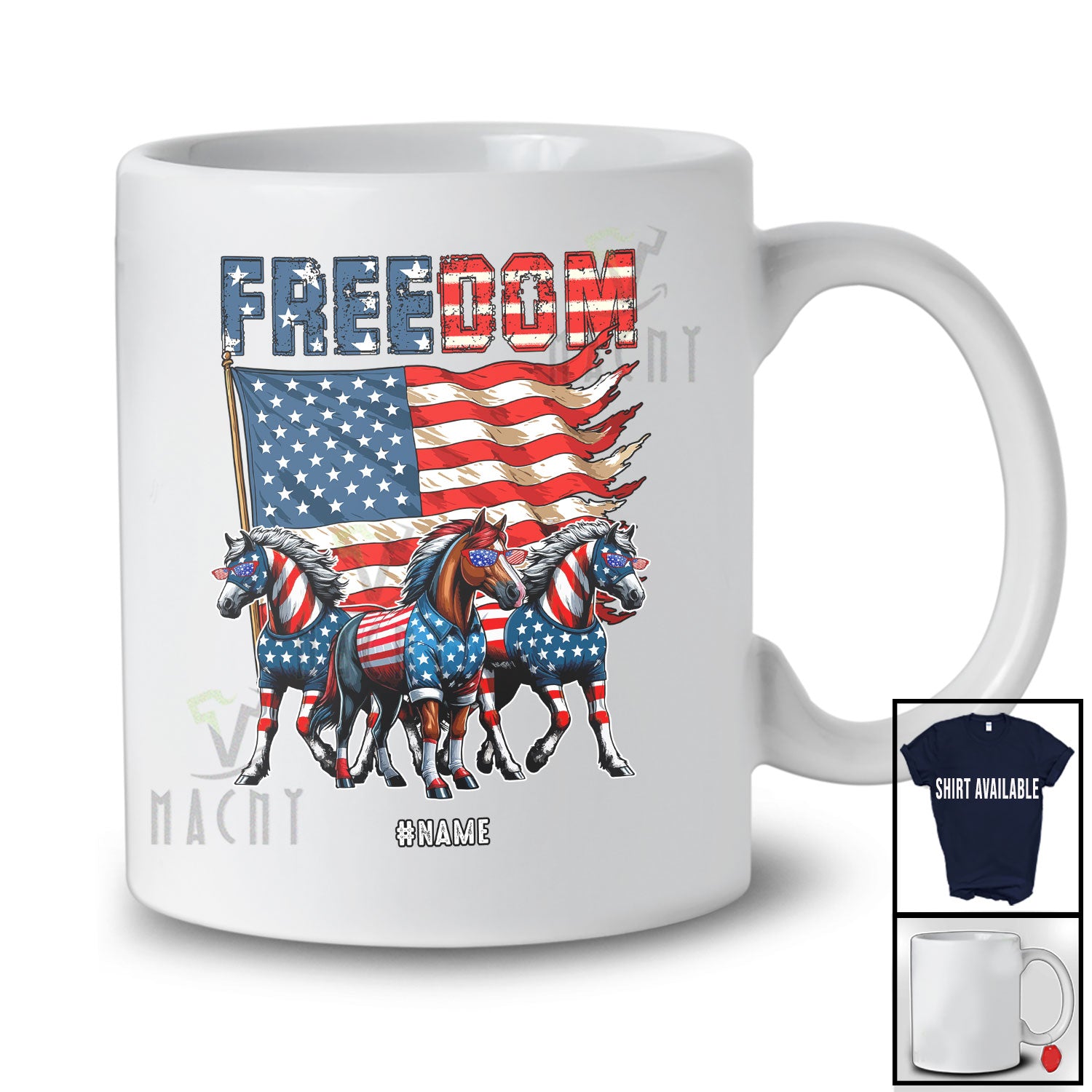 • Personalized Freedom; Fantastic 4th of July Three US Flag Horse; Custom Name Farmer Patriotic T-Shirt. This cotton t-shirt is a durable staple product with a classic fit. One of the most popular items, it has a relaxed style made for everyday and casual wear.