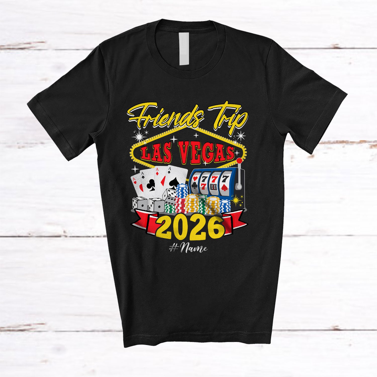 • Personalized Friends Trip Las Vegas 2026; Joyful Custom Name Friends Group; Party Together T-Shirt. This cotton t-shirt is a durable staple product with a classic fit. One of the most popular items, it has a relaxed style made for everyday and casual wear.