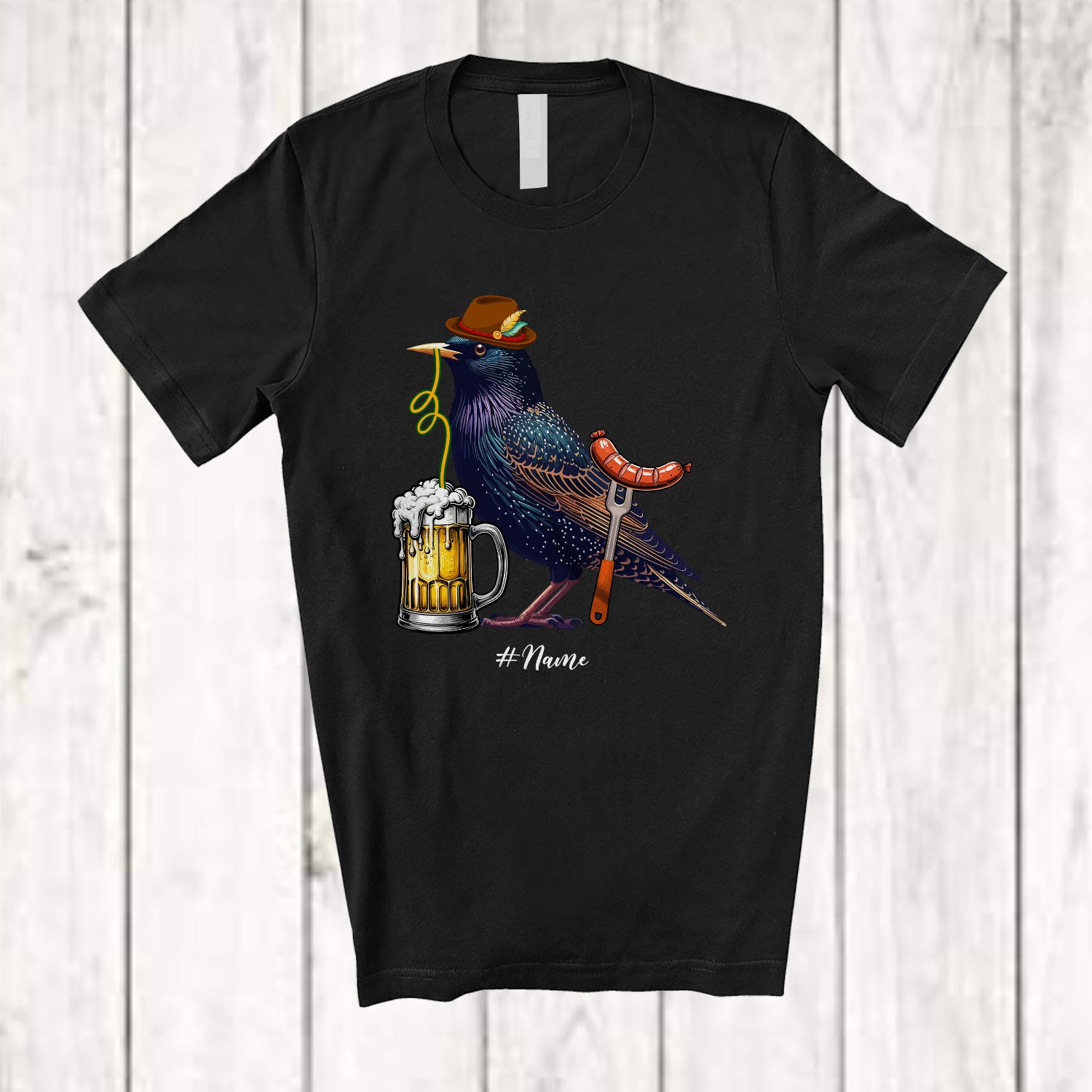 Personalized German Starling Drinking Beer; Cheerful Festival Oktoberfest; Custom Name Family T-Shirt