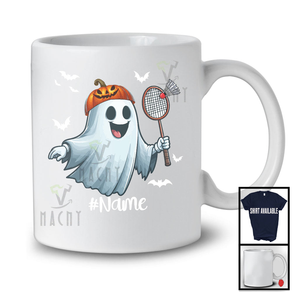Personalized Ghost Playing Badminton, Horror Halloween Custom Name Badminton Player Team T-Shirt