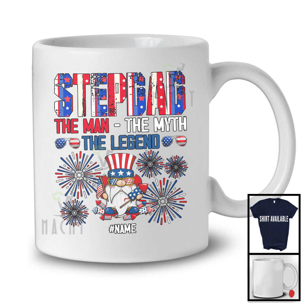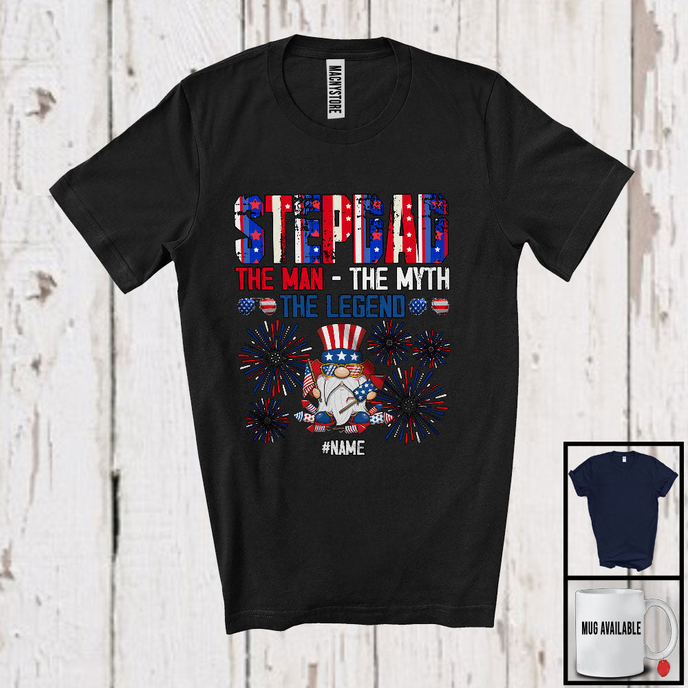 Personalized Gnome Custom Name Stepdad Myth Legend, Proud 4th Of July USA Patriotic, Family T-Shirt
