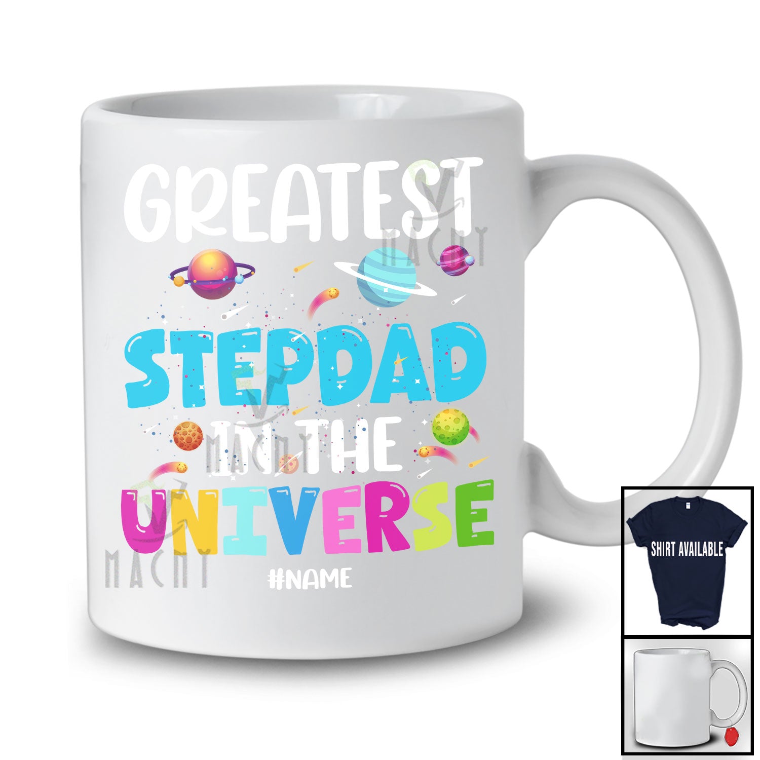 • Personalized Greatest Stepdad in the Universe; Happy Father's Day Space Custom Name Family T-Shirt. This cotton t-shirt is a durable staple product with a classic fit. One of the most popular items, it has a relaxed style made for everyday and casual wear.