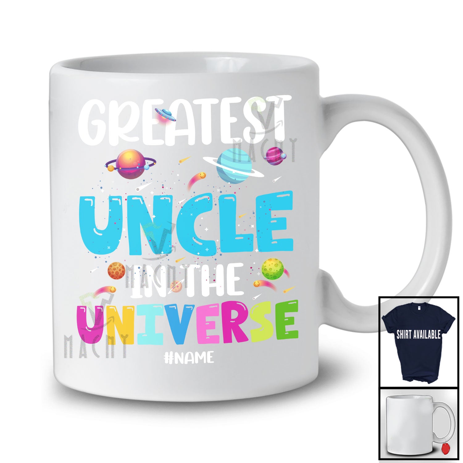 Personalized Greatest Uncle in the Universe; Happy Father's Day Space Custom Name Family T-Shirt. This cotton t-shirt is a durable staple product with a classic fit. One of the most popular items, it has a relaxed style made for everyday and casual wear.