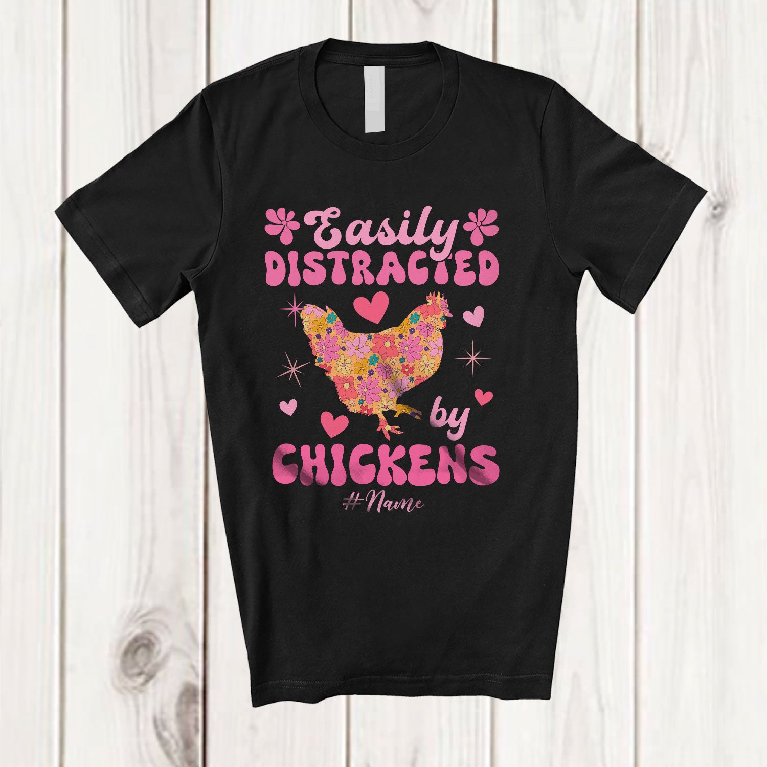 The Personalized Groovy Easily Distracted By Chickens; Adorable Custom Name Floral Flowers; Farmer T-Shirt is the yin, to your yang. You've found what you're looking for.