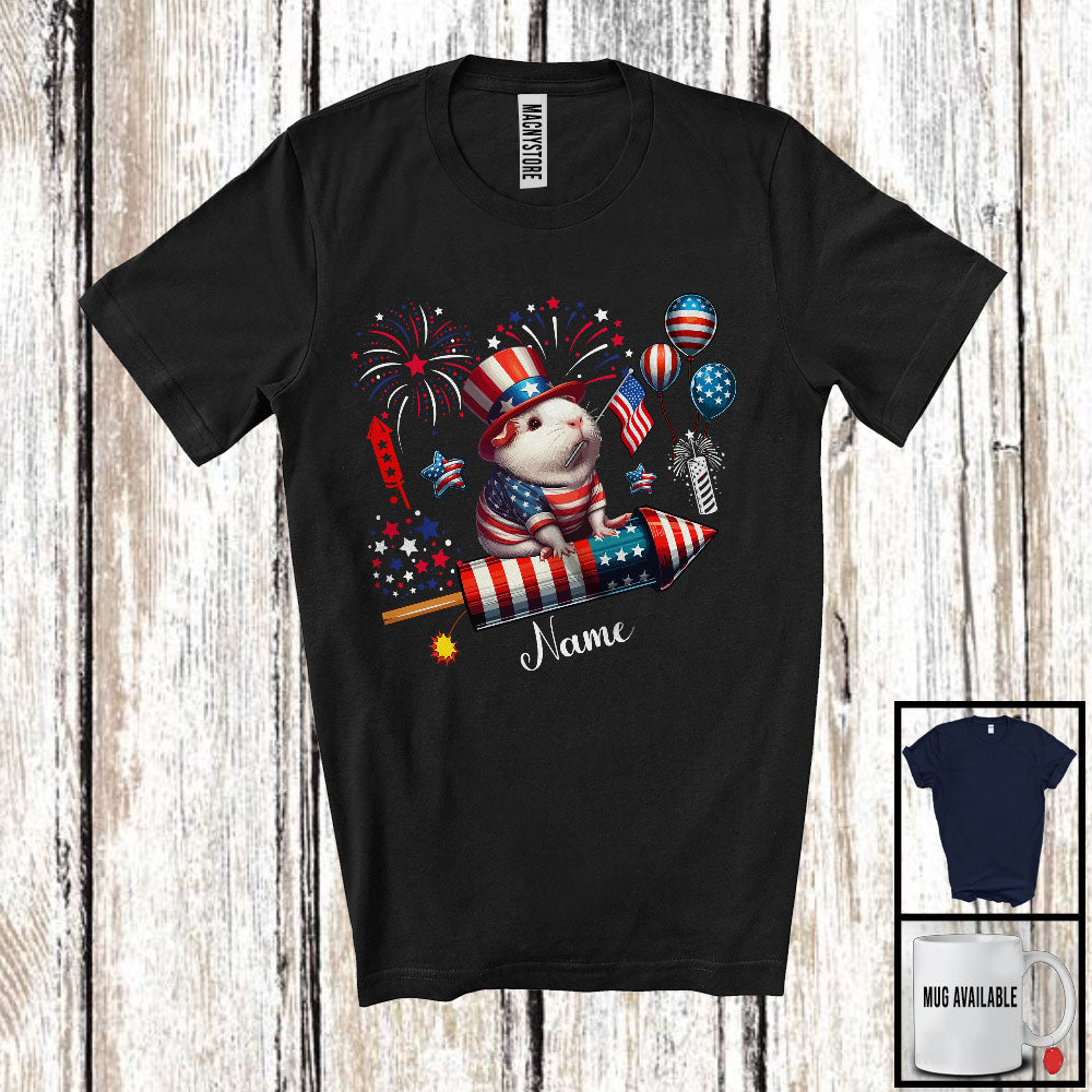 Personalized Guinea Pig Riding Firecracker, Lovely 4th Of July USA Flag Custom Name, Zoo Animal T-Shirt