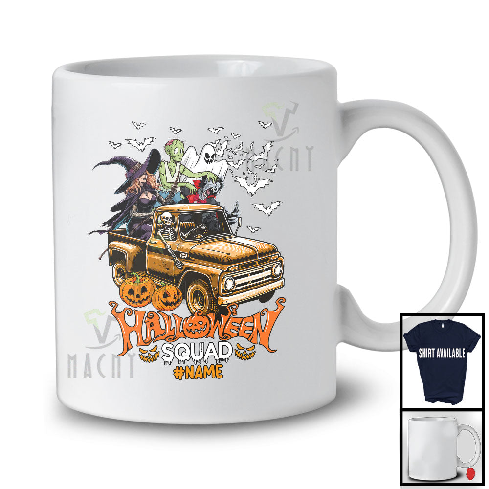 This Personalized Halloween Squad; Scary Witch Zombie On Pickup Truck; Custom Name Family T-Shirt is great idea gift for your family, friends in this birthday, christmas, mother's day, father's day, patrick's day or any holiday.
