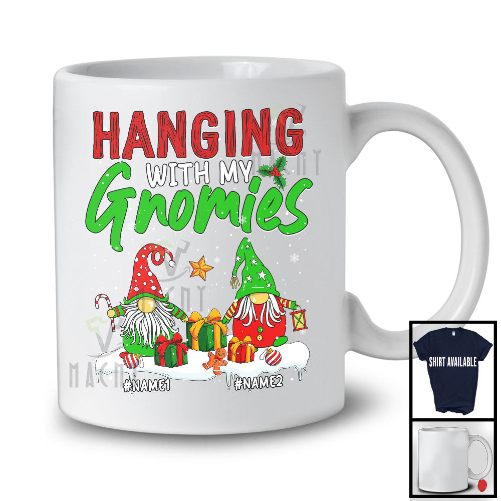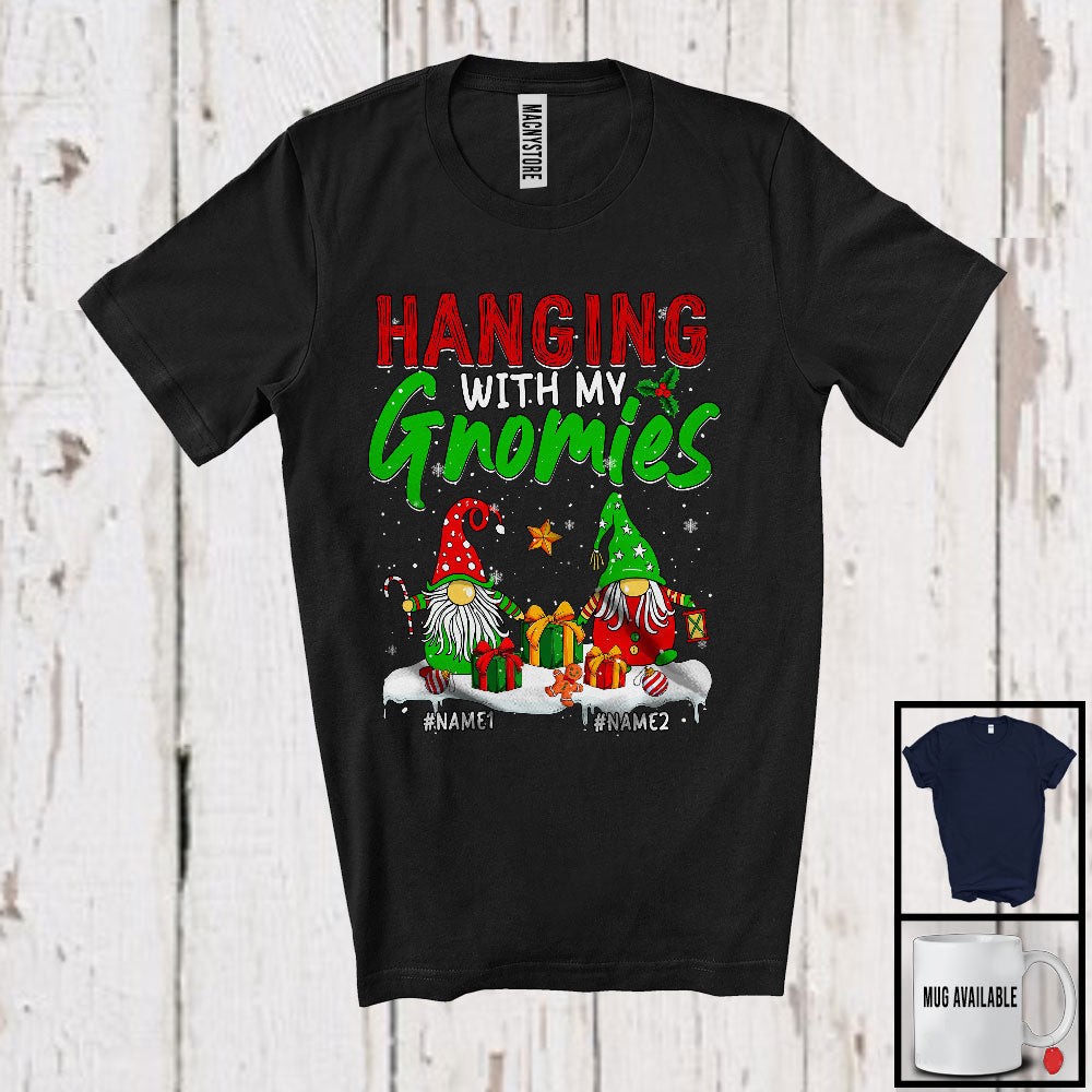 • Personalized Hanging With My Gnomies; Humorous Christmas Custom Name 2 Gnomes; Family T-Shirt. This cotton t-shirt is a durable staple product with a classic fit. One of the most popular items, it has a relaxed style made for everyday and casual wear.