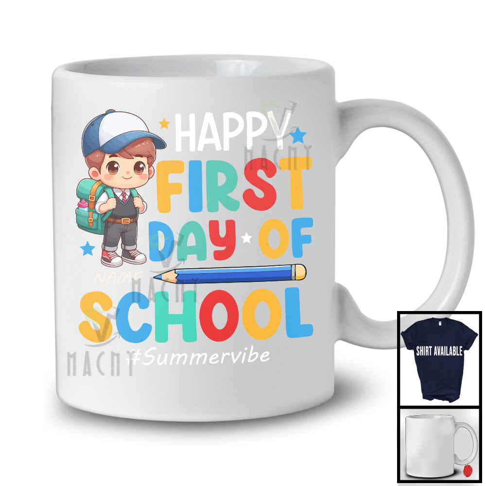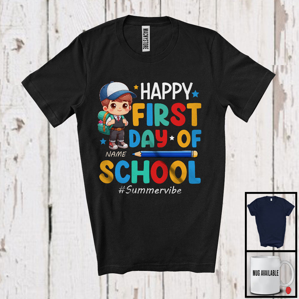 Personalized Happy First Day Of School, Lovely Summer Vacation Custom Name Boy, Flowers Students T-Shirt