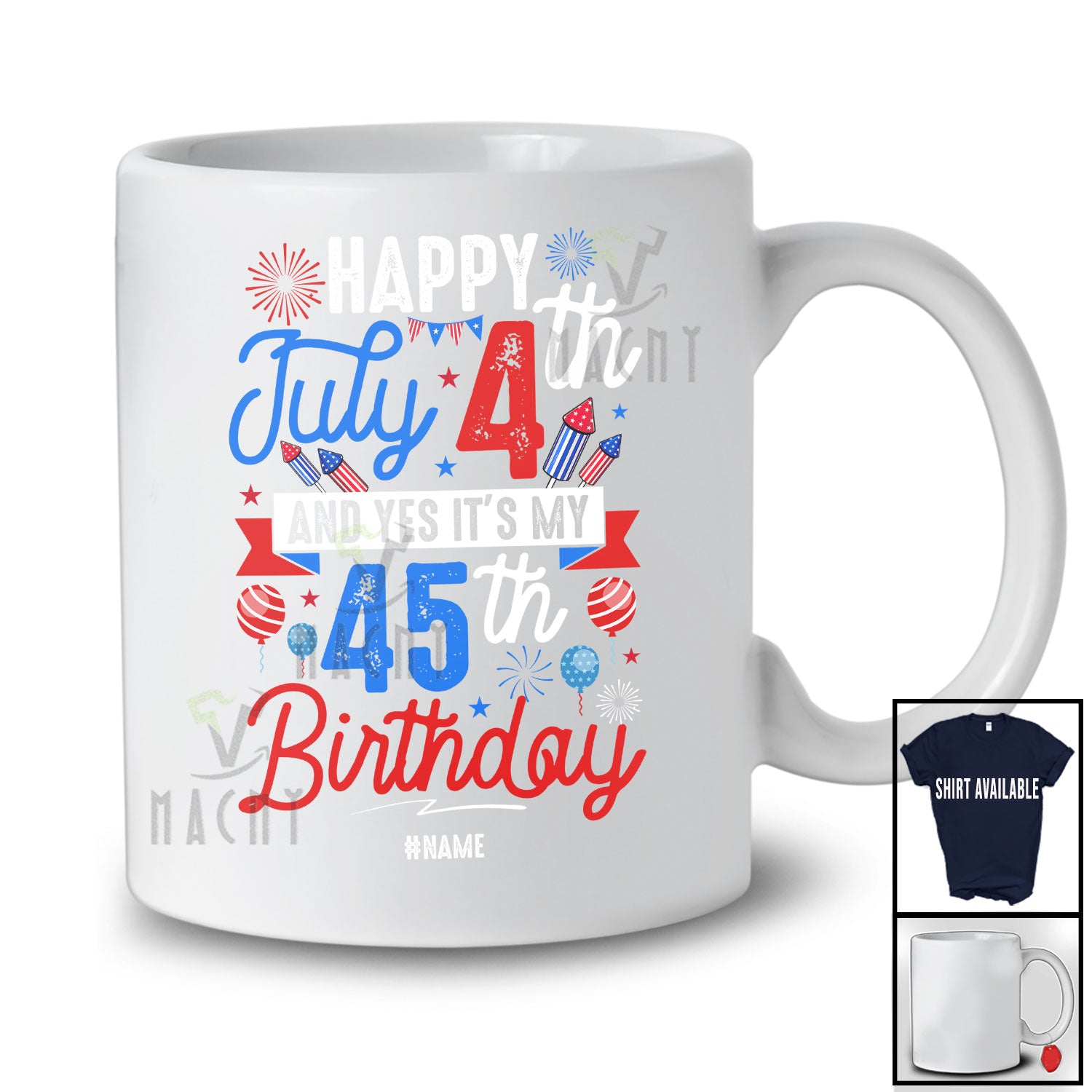 • Personalized Happy July 4th and 45th Birthday; Amazing 4th Of July Custom Name Patriotic; Family T-Shirt. This cotton t-shirt is a durable staple product with a classic fit. One of the most popular items, it has a relaxed style made for everyday and casual wear.