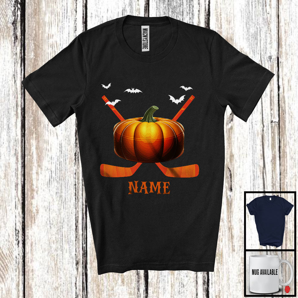 Personalized Hockey Pumpkin Face, Humorous Halloween Custom Name Hockey Player T-Shirt