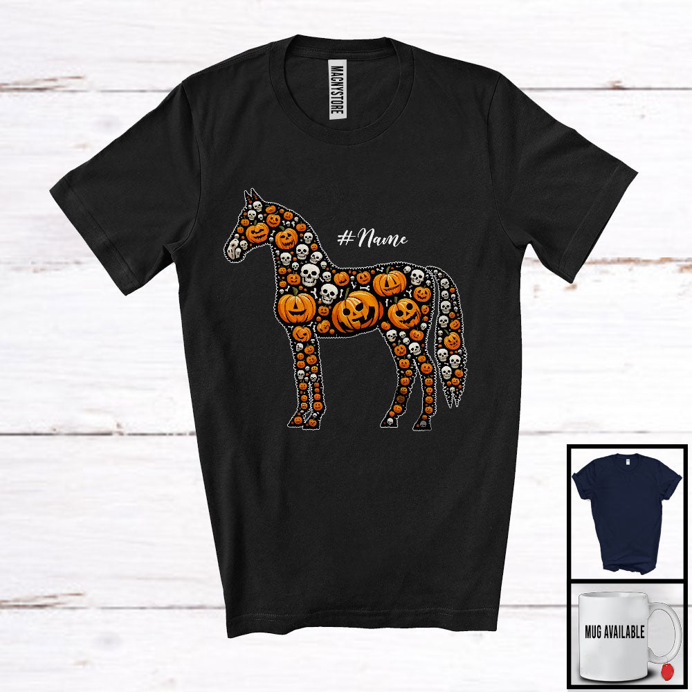 Personalized Horse Skull Pumpkin Shape; Humorous Custom Name Horse; Farm Farmer T-Shirt