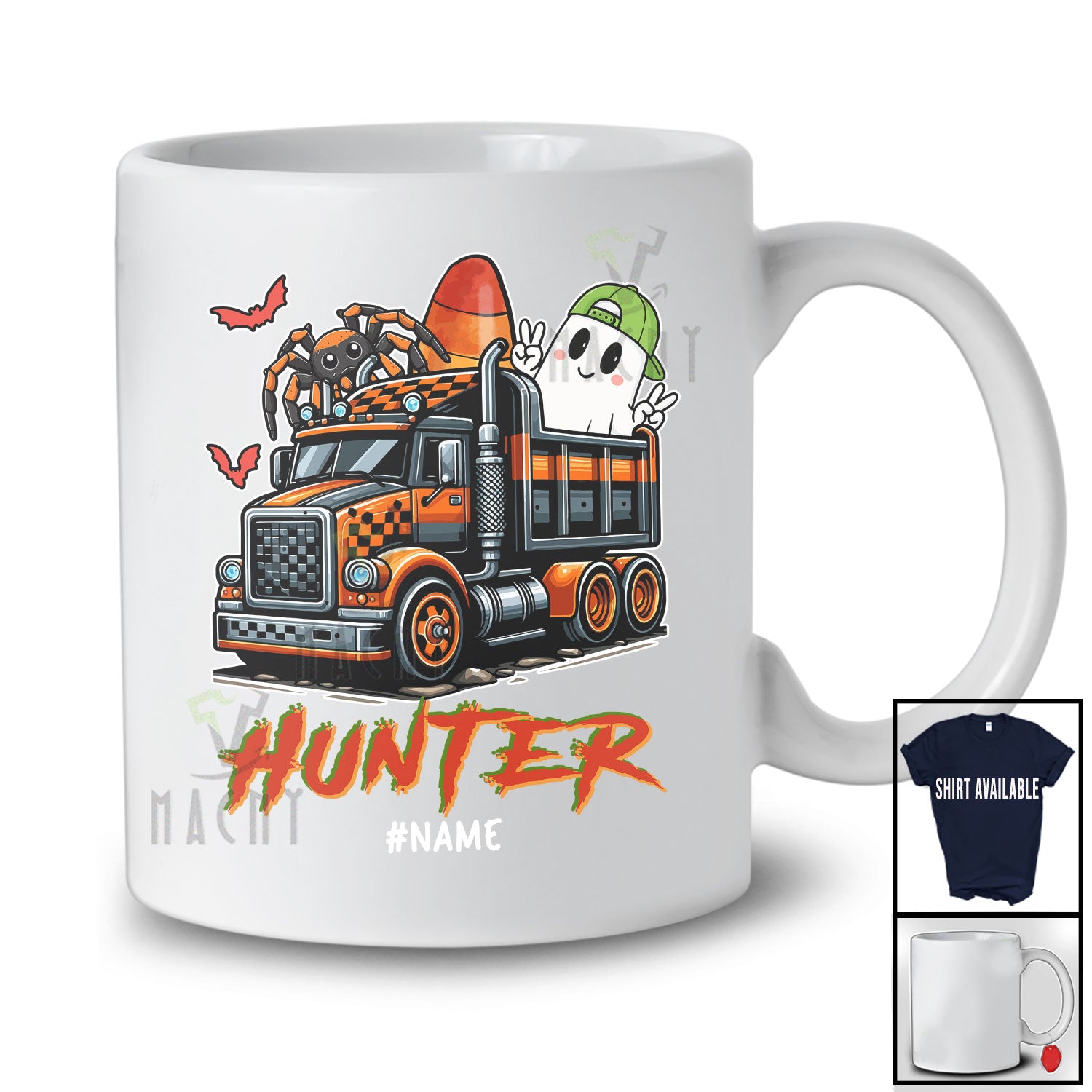 The Personalized Hunter; Amazing Halloween Boo Ghost Spider On Truck; Custom Name Boy Family T-Shirt destined to impress, and priced at only $12.95, for a limited time.