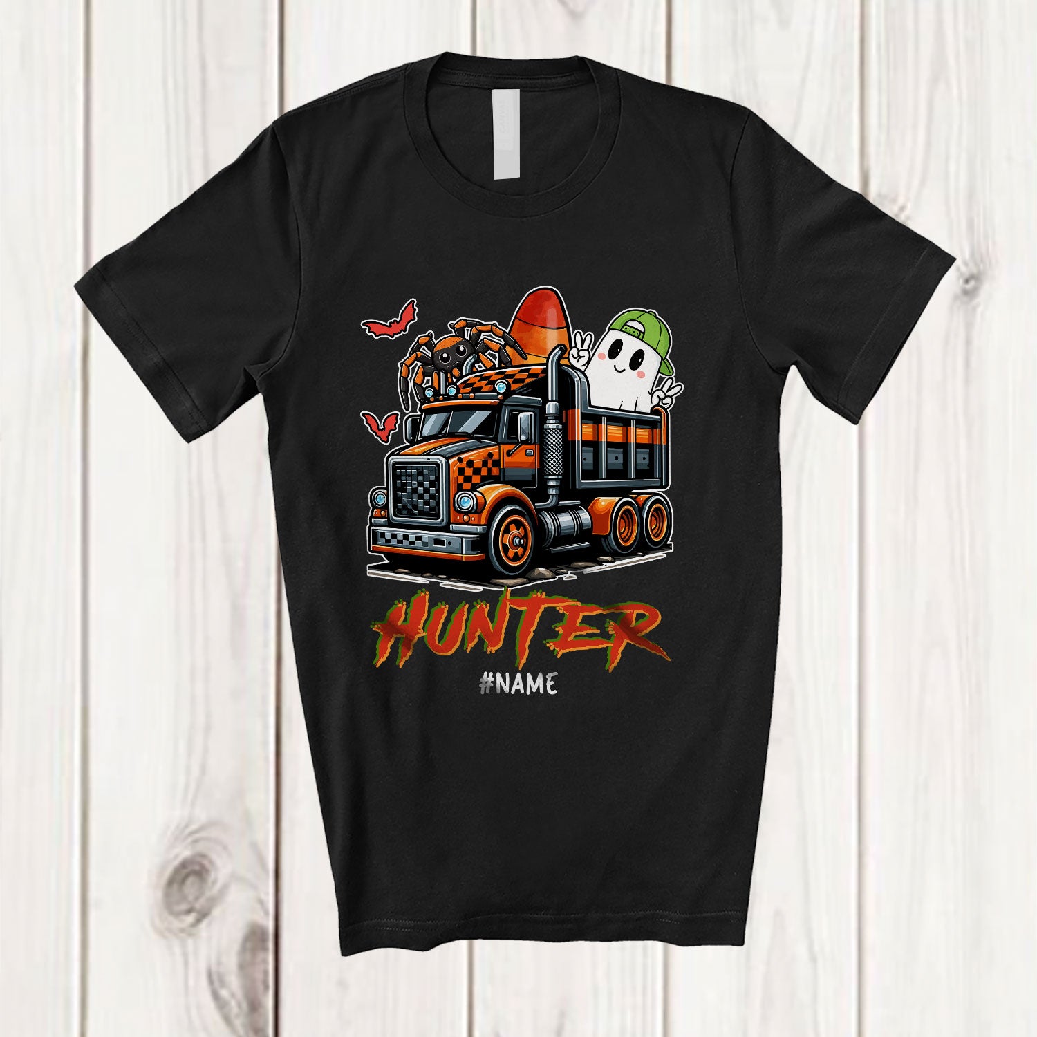 Personalized Hunter; Amazing Halloween Boo Ghost Spider On Truck; Custom Name Boy Family T-Shirt
