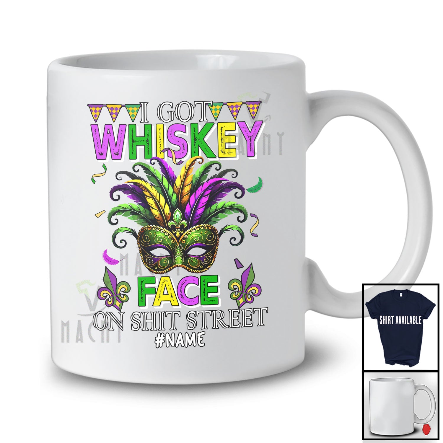 • Personalized I Got Whiskey Face On Shit Street; Awesome Mardi Gras Custom Drinking Drunker; Parades T-Shirt. This cotton t-shirt is a durable staple product with a classic fit. One of the most popular items, it has a relaxed style made for everyday and casual wear.