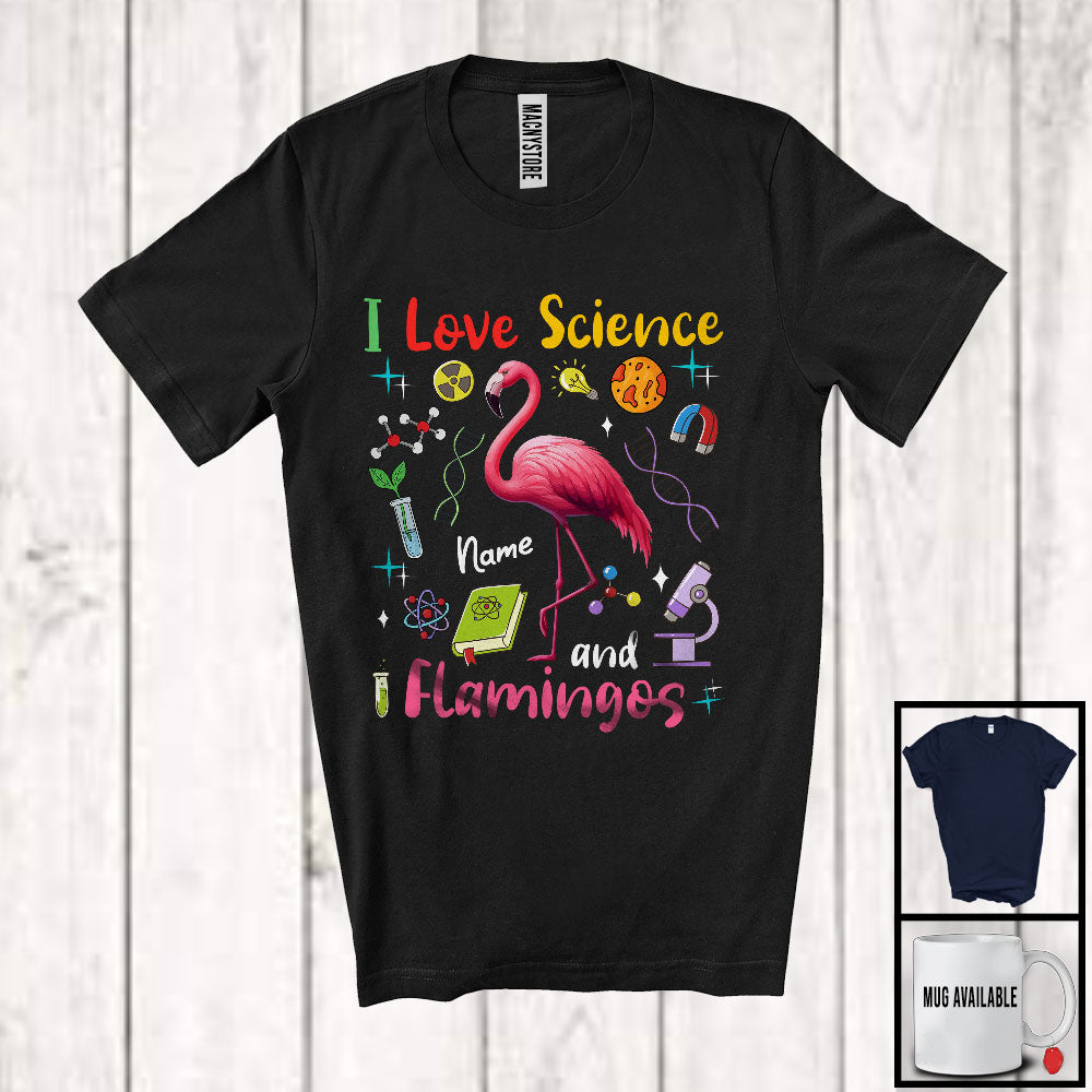 Personalized I Love Science And Flamingos; Lovely Custom Name Teacher Student Team T-Shirt
