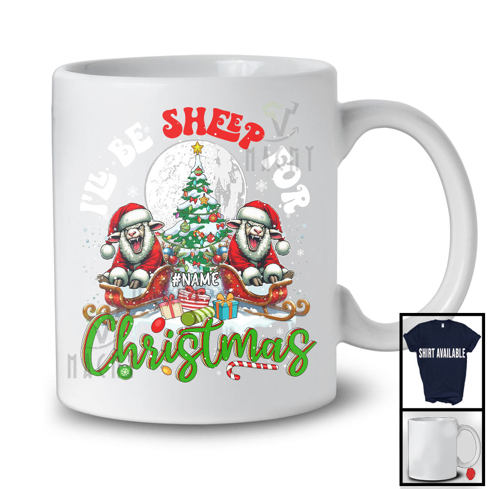 Personalized I'll Be Sheep For Christmas, Merry X-mas Tree Lights Custom Name Sheep, Snow T-Shirt