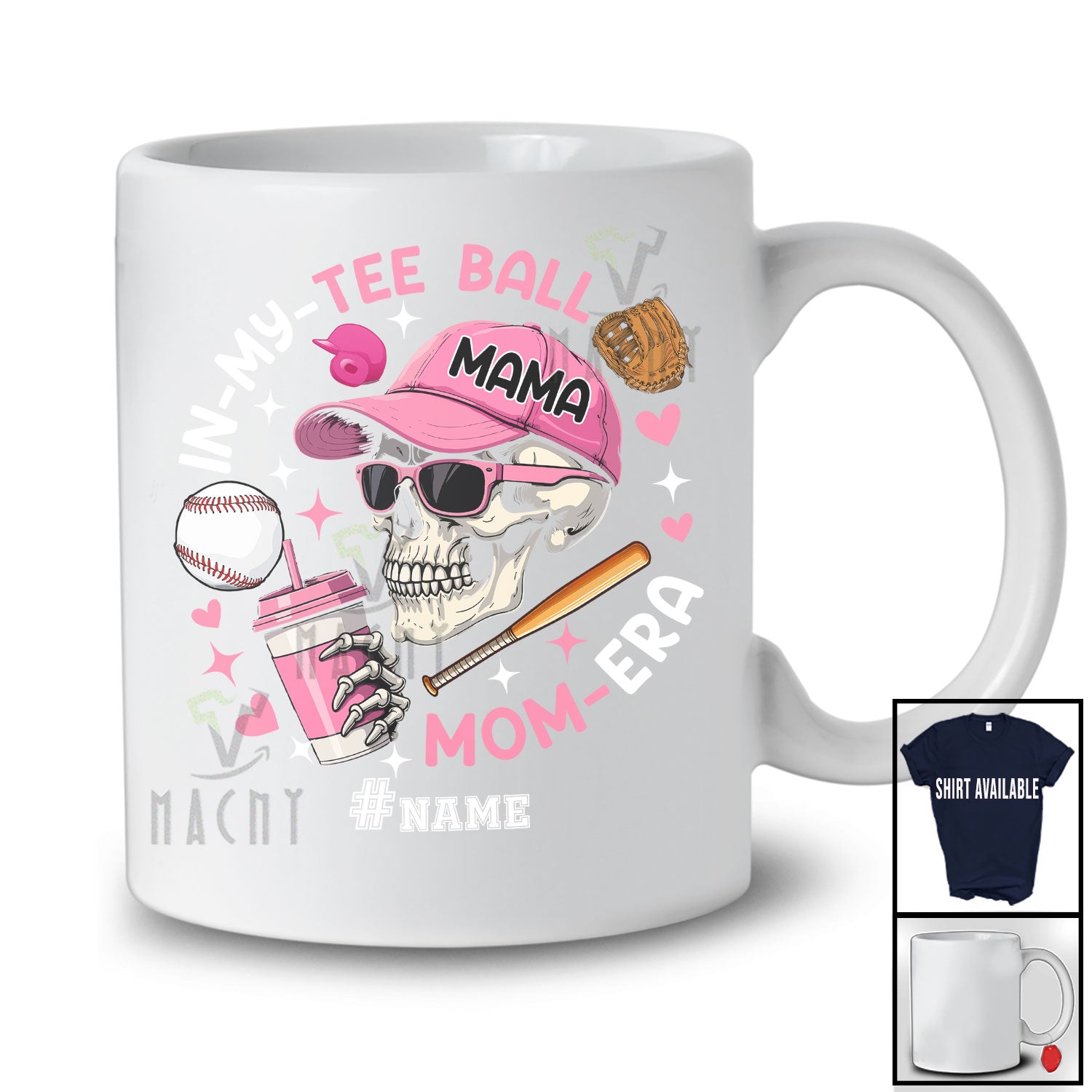 Personalized In My Tee Ball Mom Era; Joyful Mother's Day Custom Name Skeleton Baseball Player T-Shirt. This cotton t-shirt is a durable staple product with a classic fit. One of the most popular items, it has a relaxed style made for everyday and casual wear.
