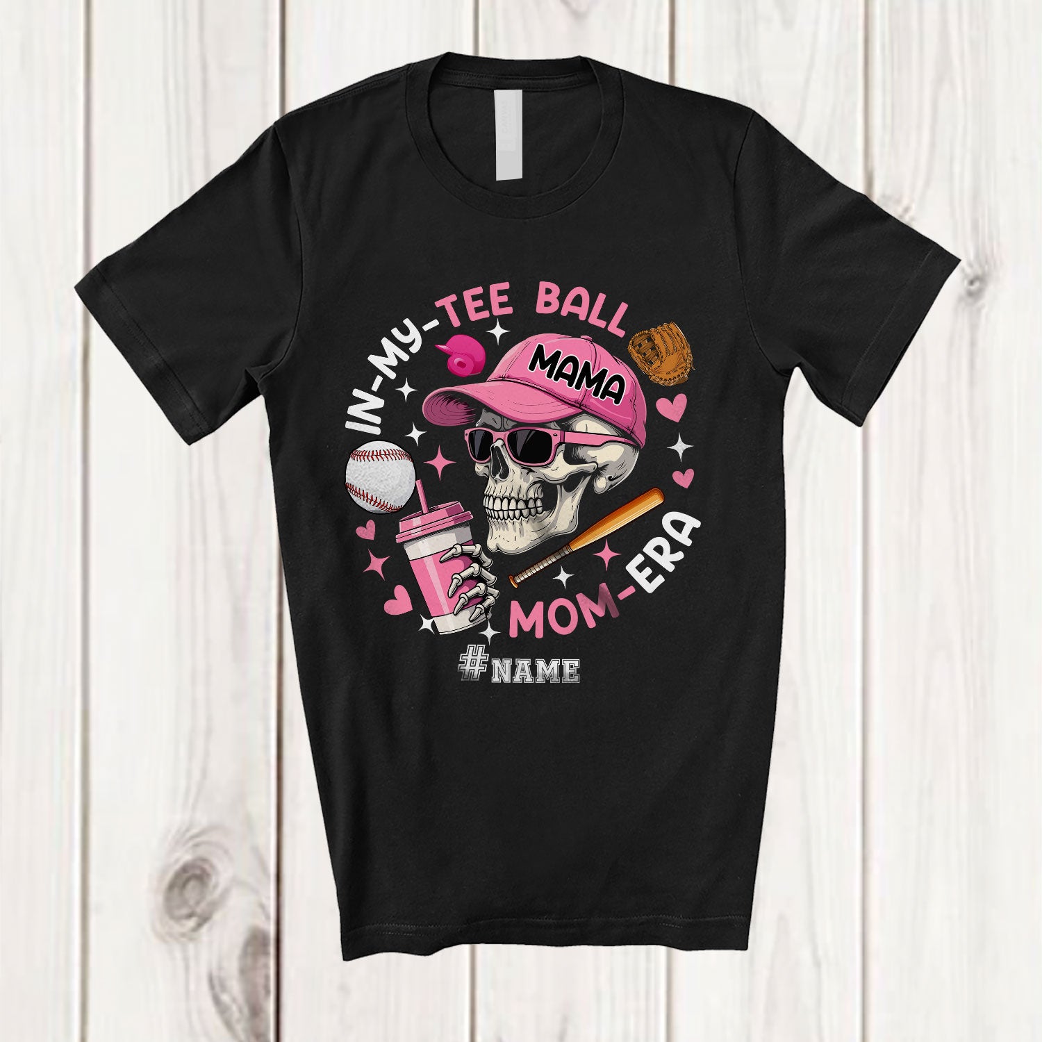 Personalized In My Tee Ball Mom Era; Joyful Mother's Day Custom Name Skeleton Baseball Player T-Shirt