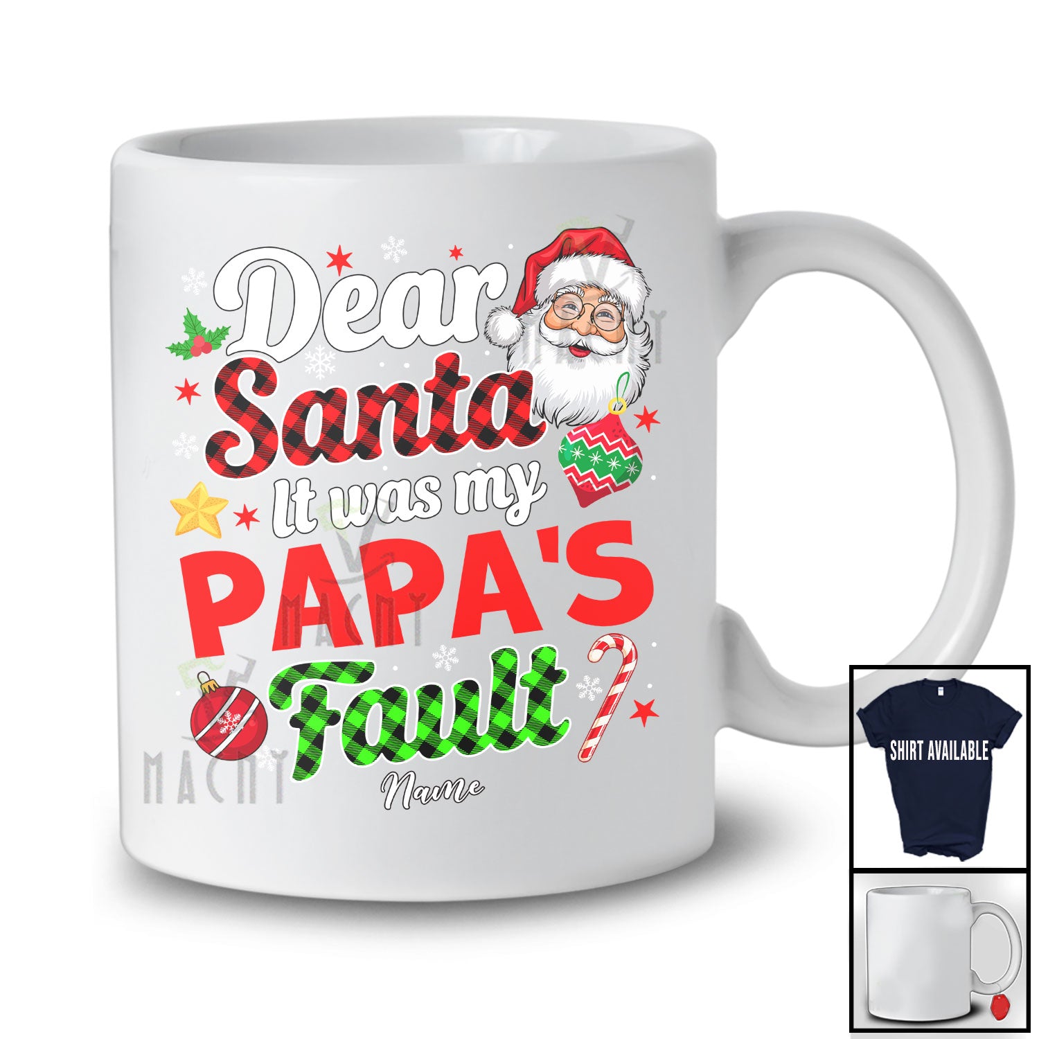 • Personalized It Was My Papa's Fault; Joyful Christmas Santa Face Plaid; Custom Name Family T-Shirt. This cotton t-shirt is a durable staple product with a classic fit. One of the most popular items, it has a relaxed style made for everyday and casual wear.