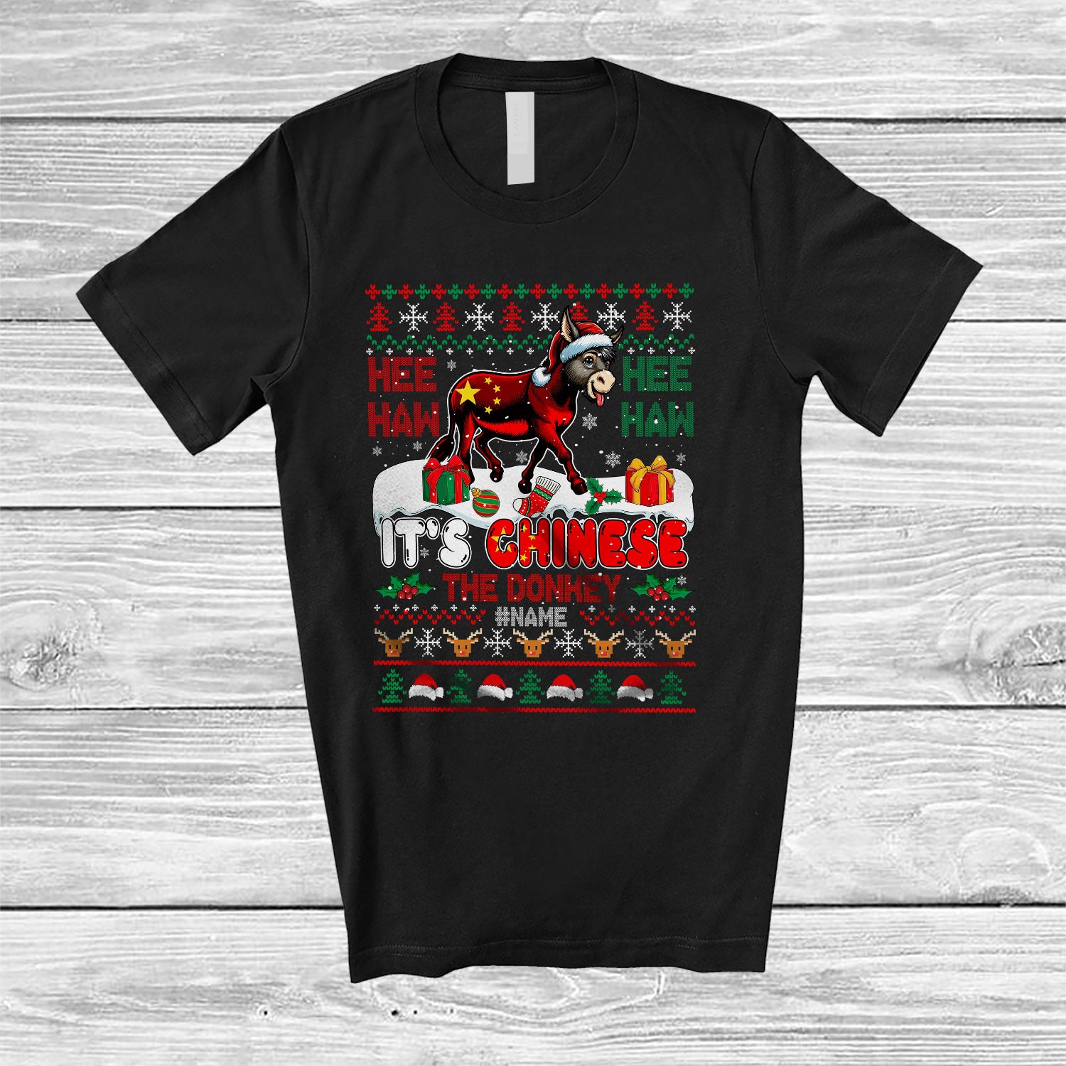 • Personalized It's Chinese The Donkey; Amazing Christmas Sweater; Custom Name Santa Donkey T-Shirt. This cotton t-shirt is a durable staple product with a classic fit. One of the most popular items, it has a relaxed style made for everyday and casual wear.