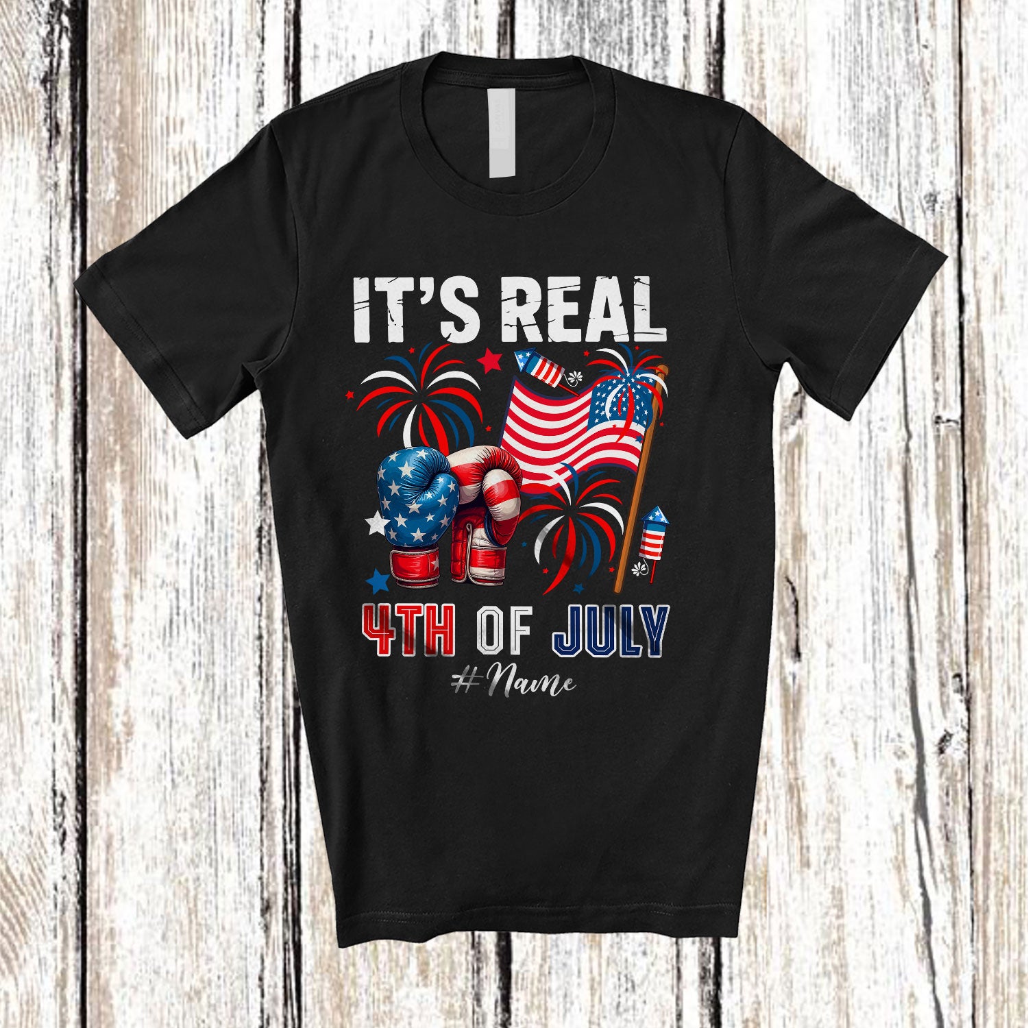 Personalized It's Real 4th of July; Amusing Custom Name Boxing Tools Player US Flag; Patriotic T-Shirt