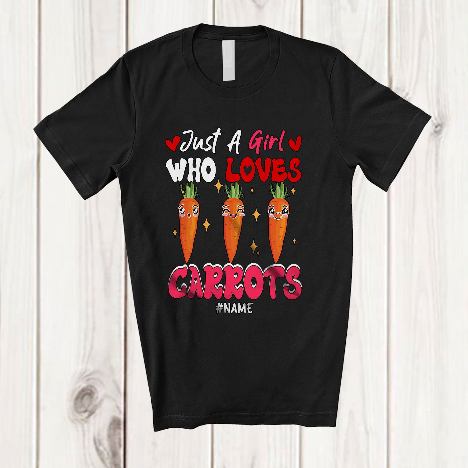 Personalized Just A Girl Who Loves Carrots; Adorable Hearts Carrot; Custom Name Family T-Shirt