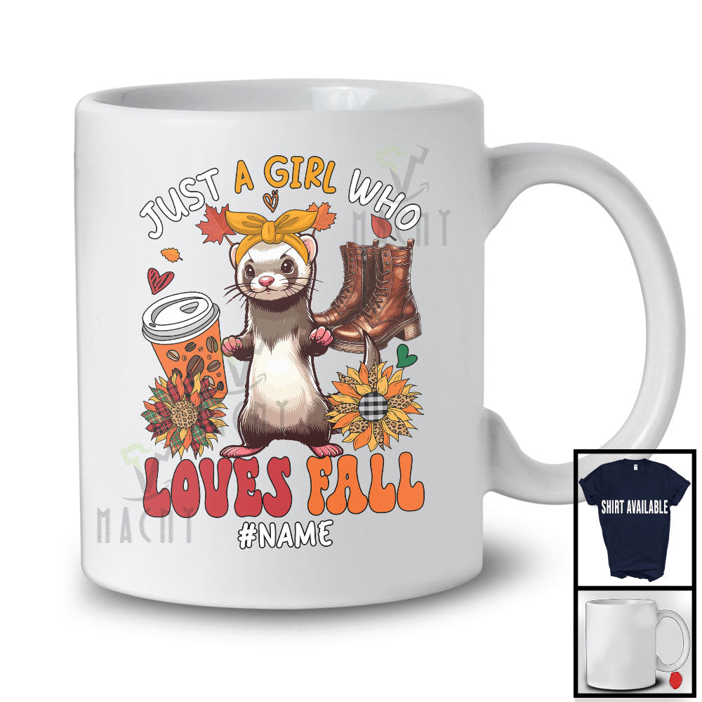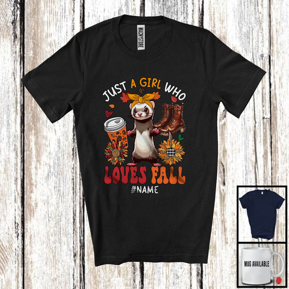 Personalized Just A Girl Who Loves Fall; Adorable Custom Name Ferret; Fall Plaid Sunflowers T-Shirt