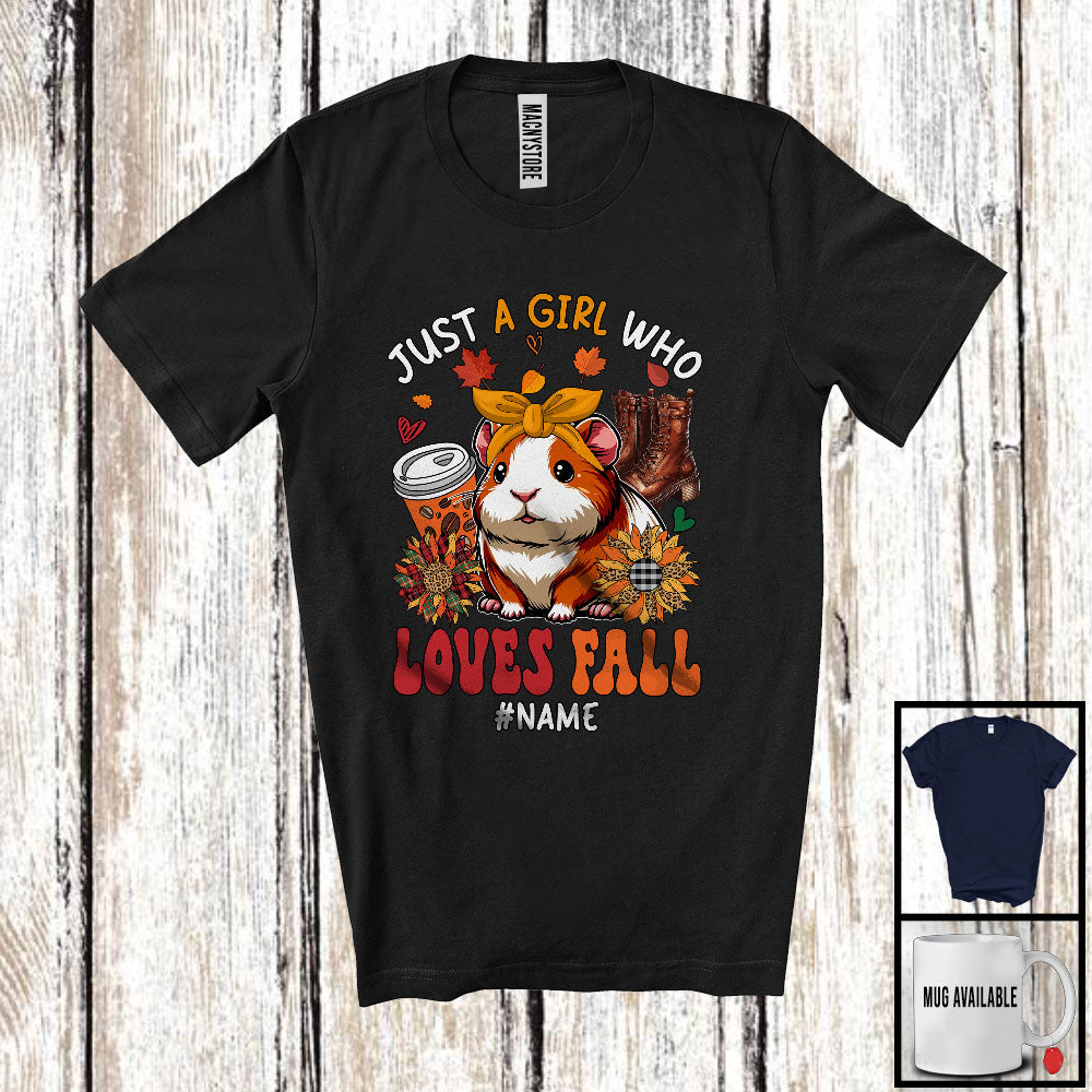Personalized Just A Girl Who Loves Fall; Adorable Custom Name Guinea Pig; Fall Plaid Sunflowers T-Shirt