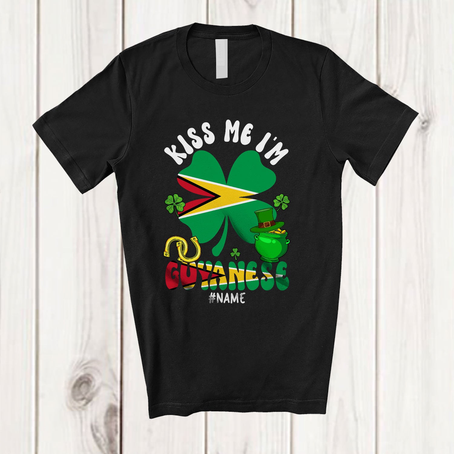The Personalized Kiss Me I'm Guyanese; Fantastic St. Patrick's Day Custom Name Guyanese Flag Shamrock T-Shirt was built with people like you in mind. Something to keep you happy. Every. Single. Day.