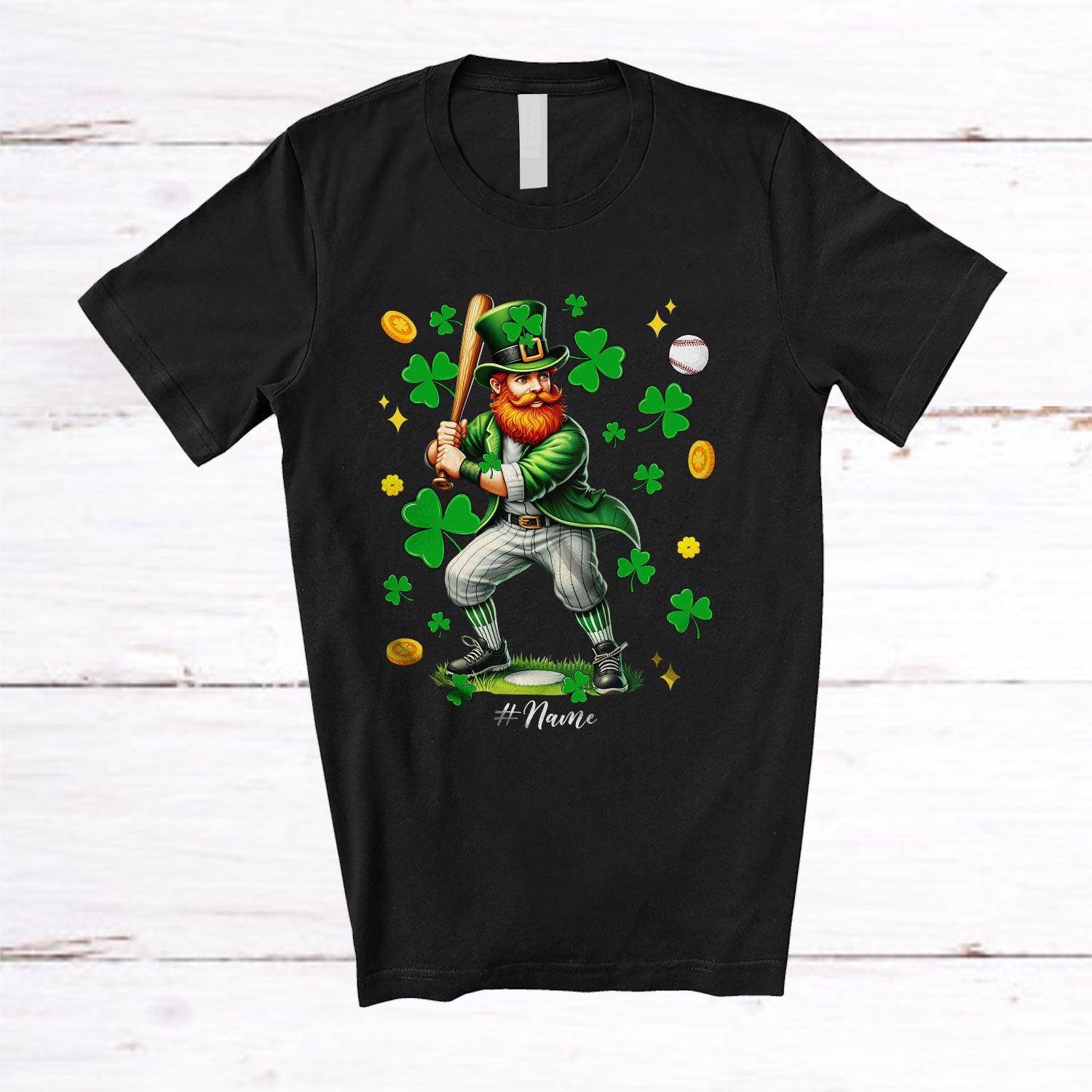 Personalized Leprechaun Playing Baseball; Joyful St. Patrick's Day Custom Name Baseball Player T-Shirt