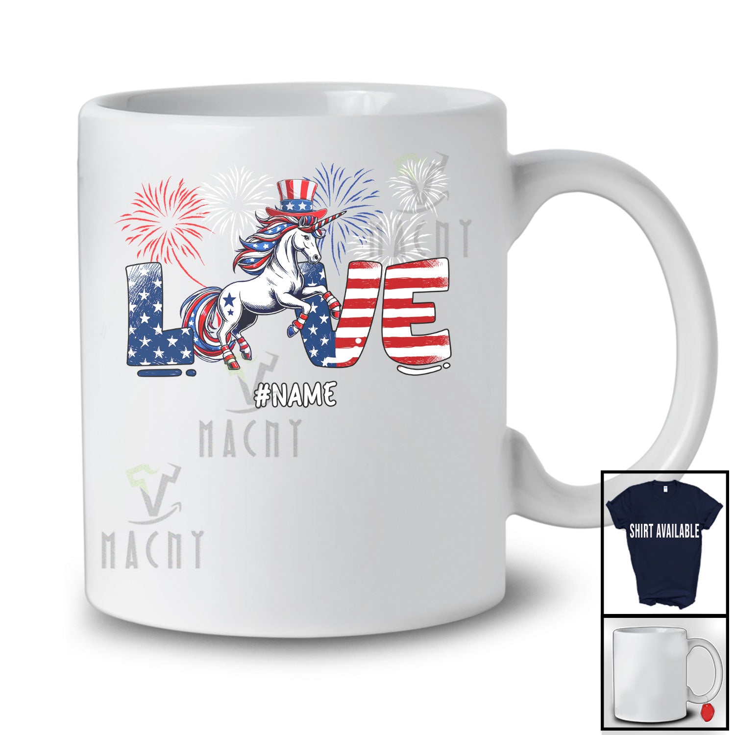 Personalized Love; Adorable 4th Of July USA Flag Custom Name Unicorn Lover; Family Group T-Shirt. This cotton t-shirt is a durable staple product with a classic fit. One of the most popular items, it has a relaxed style made for everyday and casual wear.