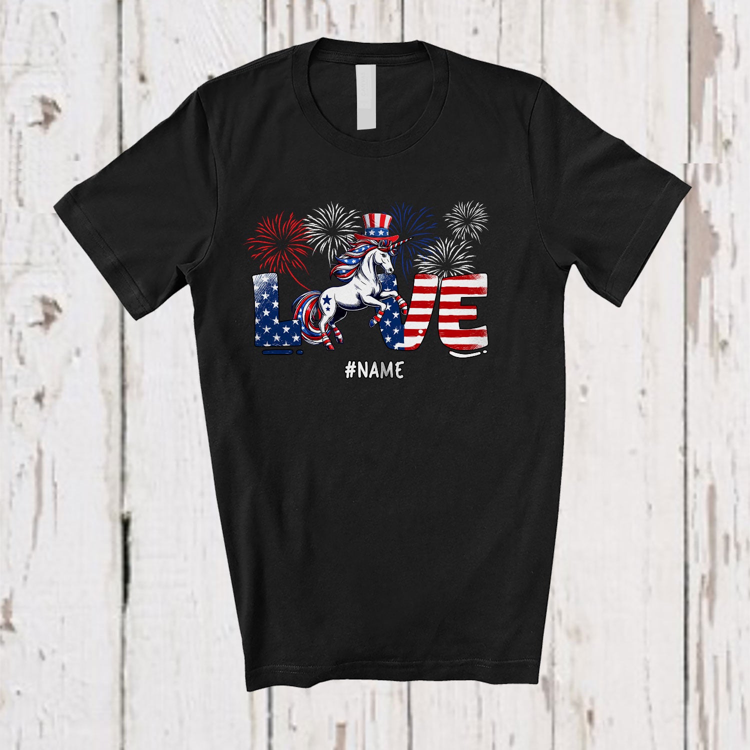 Personalized Love; Adorable 4th Of July USA Flag Custom Name Unicorn Lover; Family Group T-Shirt