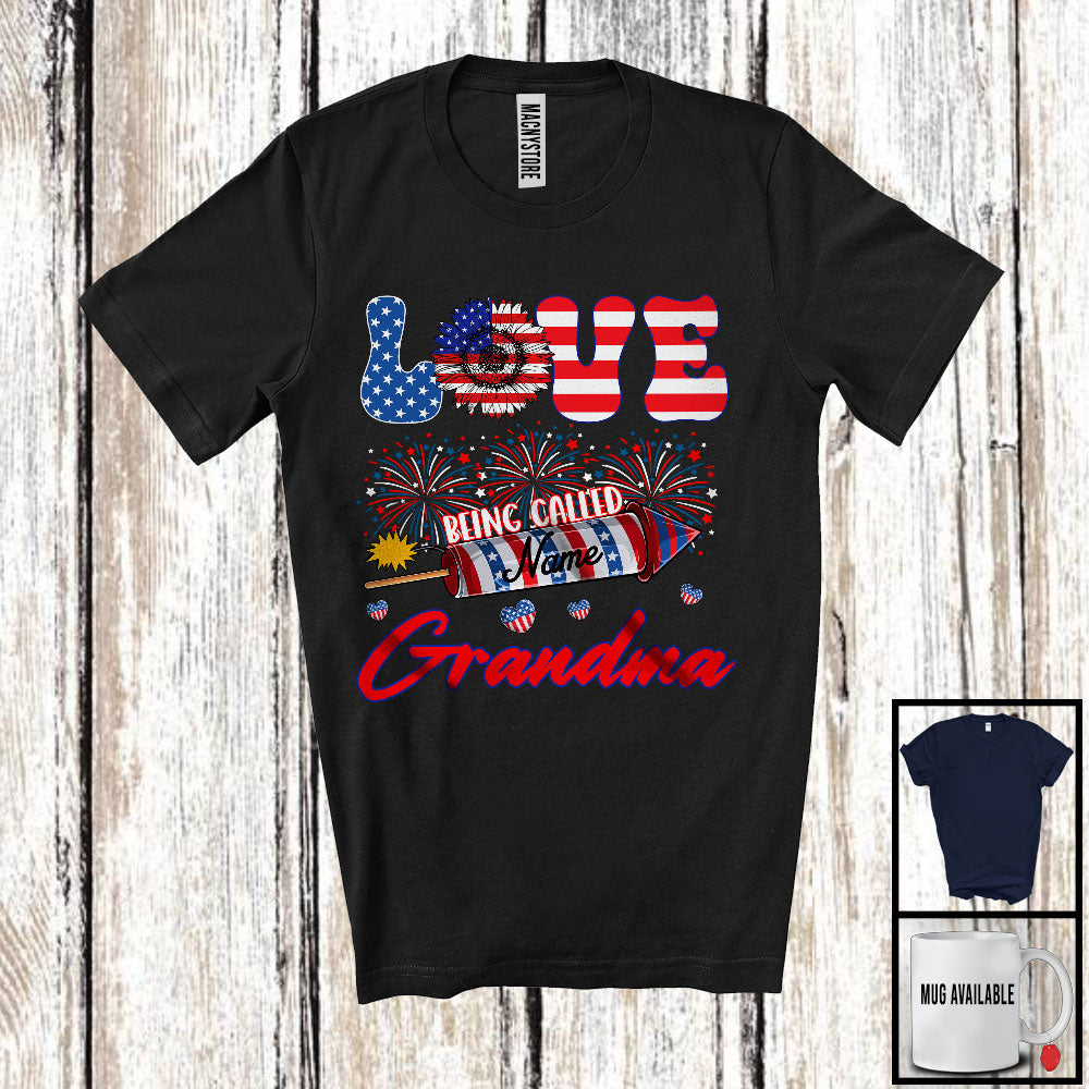 Personalized Love Being Called Grandma, Proud 4th Of July USA Flag Custom Name Family, Patriotic T-Shirt