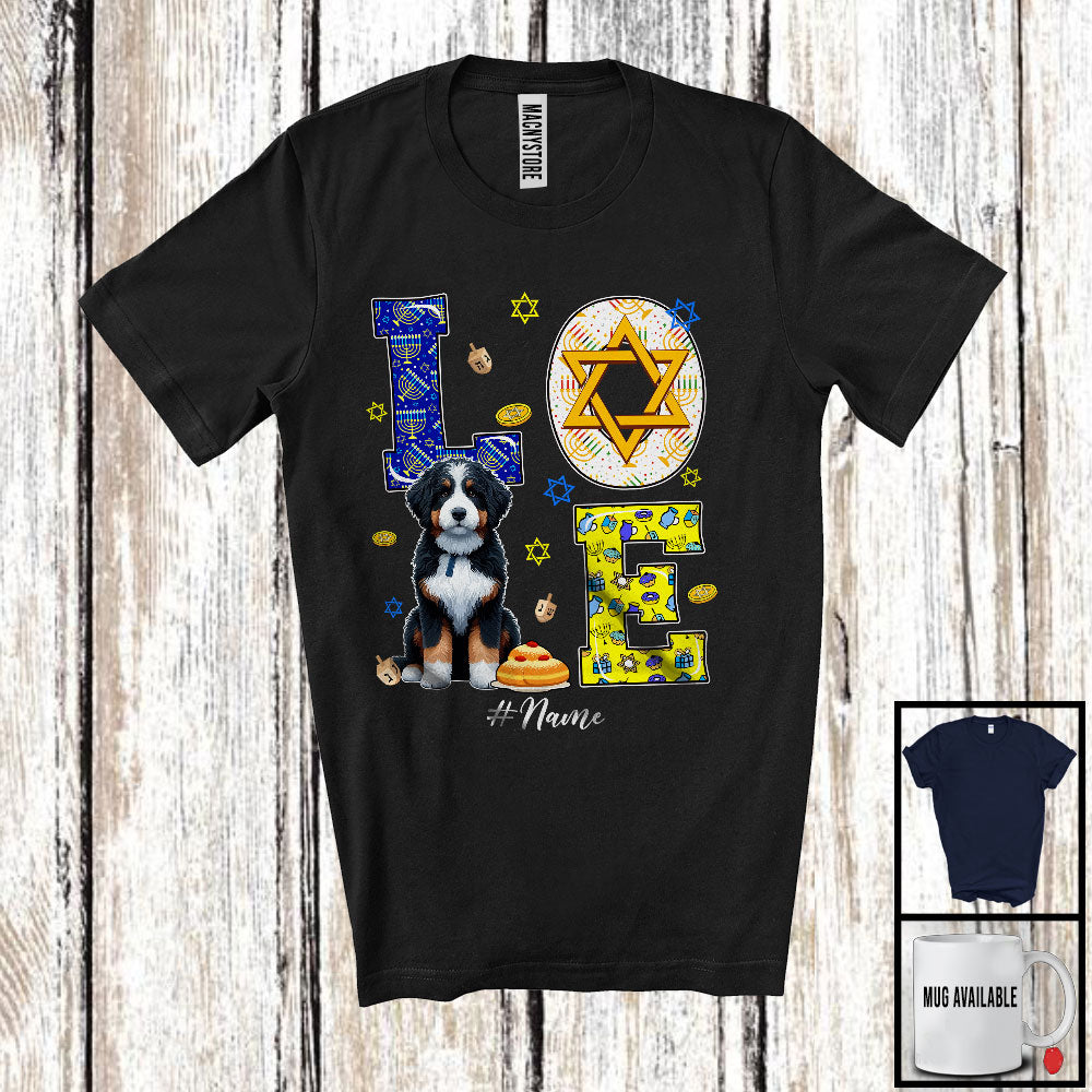 Personalized LOVE; Happy Hanukkah Decoration Custom Name Bernedoodle Owner; Family Group T-Shirt