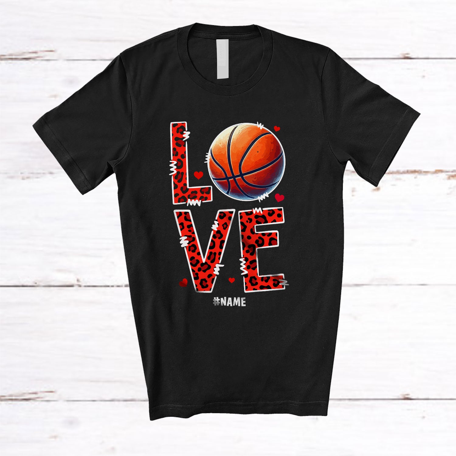 new MacnyStore - Personalized Love; Joyful Valentine's Day Custom Name Basketball Player; Leopard Hearts T-Shirt – Macnystore