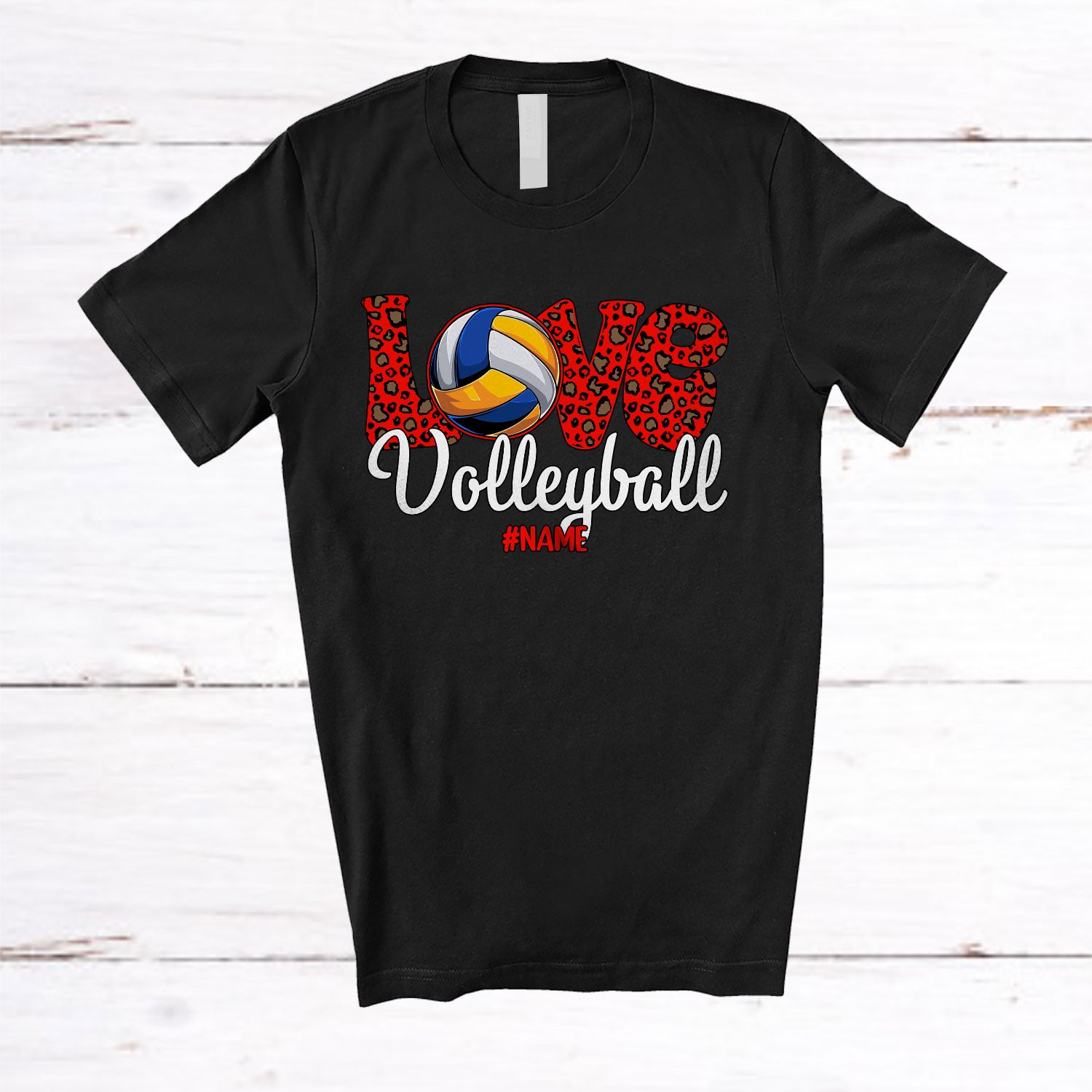 The Personalized LOVE Volleyball; Amazing Valentine Leopard Volleyball; Women Custom Name Player T-Shirt destined to impress, and priced at only $12.95, for a limited time.