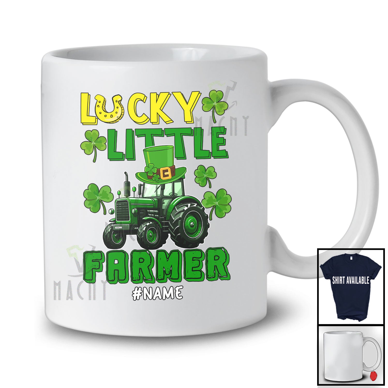 Personalized Lucky Little Farmer; Lovely St. Patrick's Day Custom Name Farmer Leprechaun Tractor T-Shirt. This cotton t-shirt is a durable staple product with a classic fit. One of the most popular items, it has a relaxed style made for everyday and casual wear.