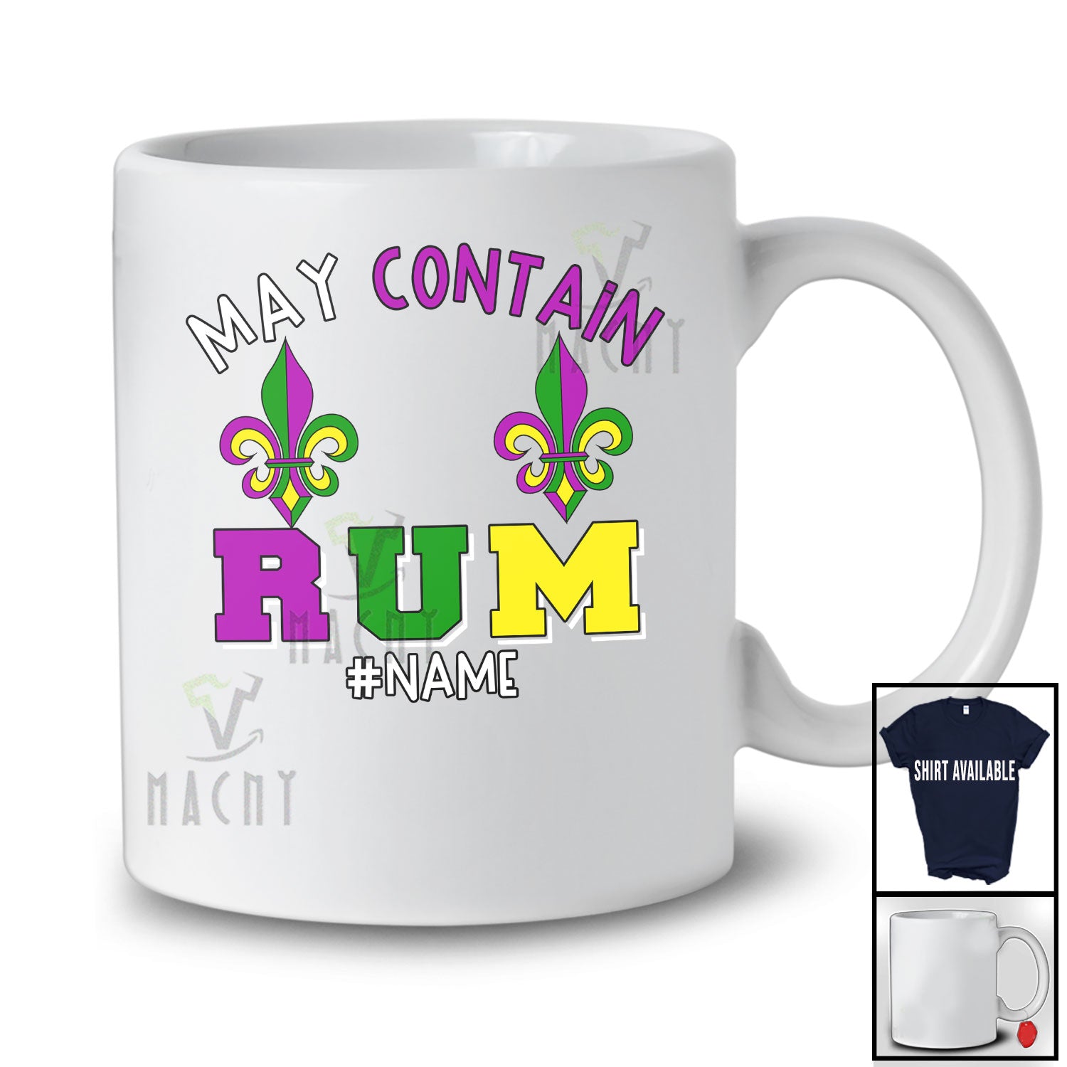 Personalized May Contain Rum; Joyful Mardi Gras Custom Name Men; Bra Fake Drinking T-Shirt. This cotton t-shirt is a durable staple product with a classic fit. One of the most popular items, it has a relaxed style made for everyday and casual wear.
