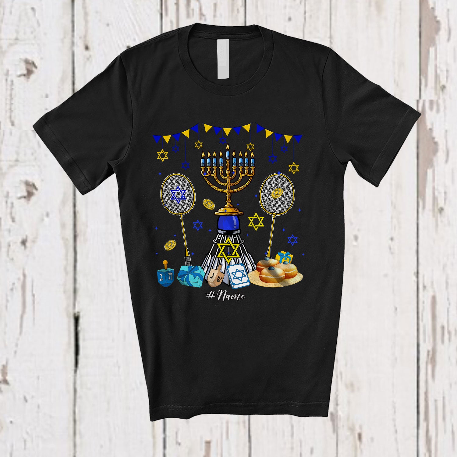 new MacnyStore - Personalized Menorah With Badminton Racket; Amazing Hanukkah Custom Name Sport Player Team T-Shirt – Macnystore