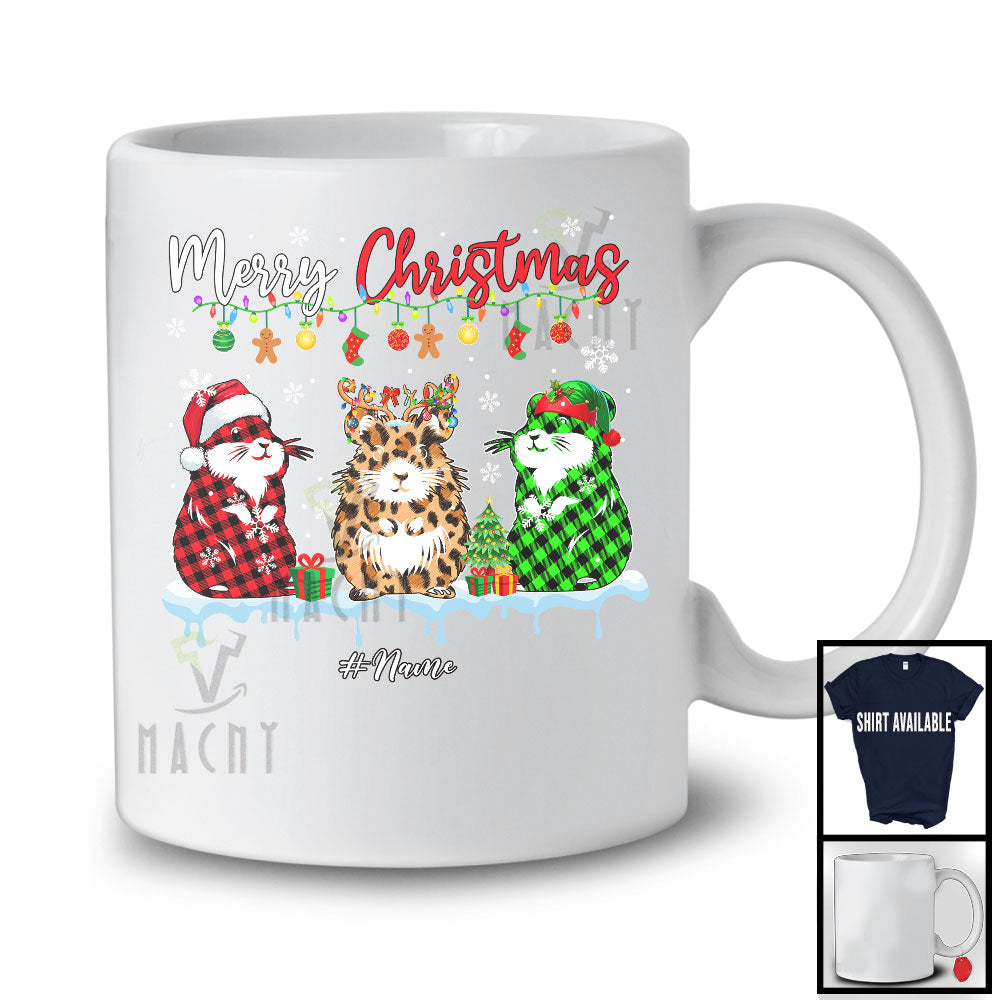 new MacnyStore - Personalized Merry Christmas; Adorable X-mas Three Leopard Plaid Hamster; Custom Name Animal T-Shirt – Macnystore