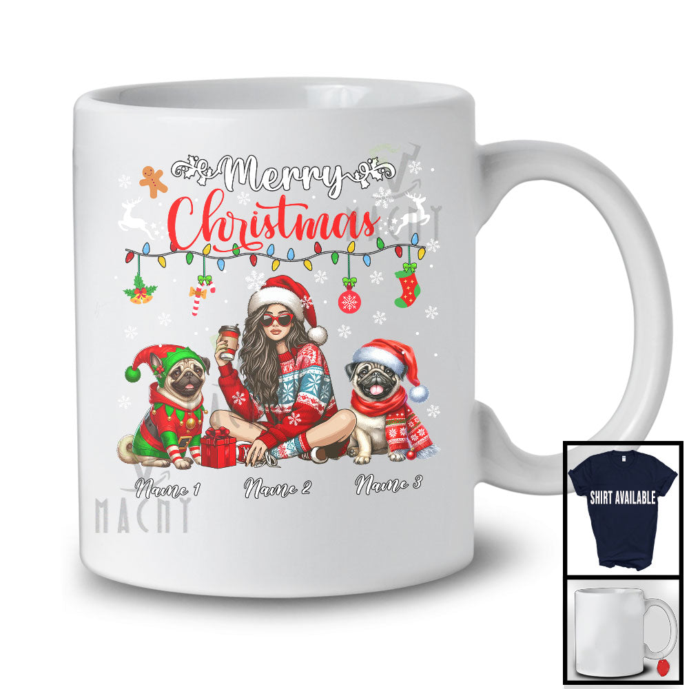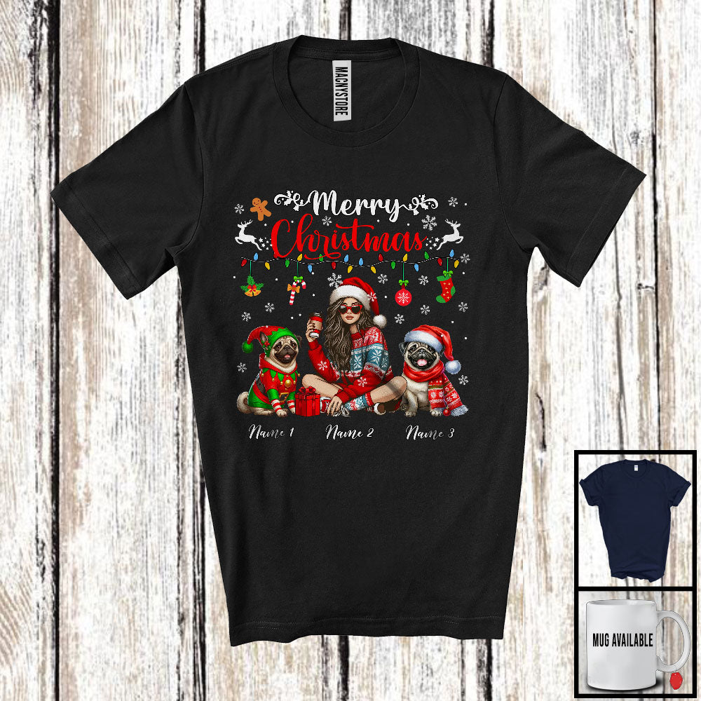Personalized Merry Christmas; Amazing X-mas Lights Custom Name Girl And Pug Owner; Family T-Shirt