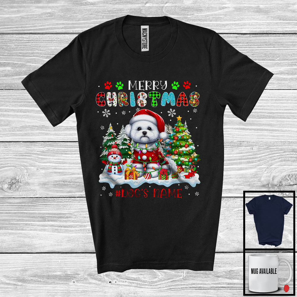Personalized Merry Christmas; Lovely Custom Name Santa Bichon Frise; Plaid X-mas T-Shirt
