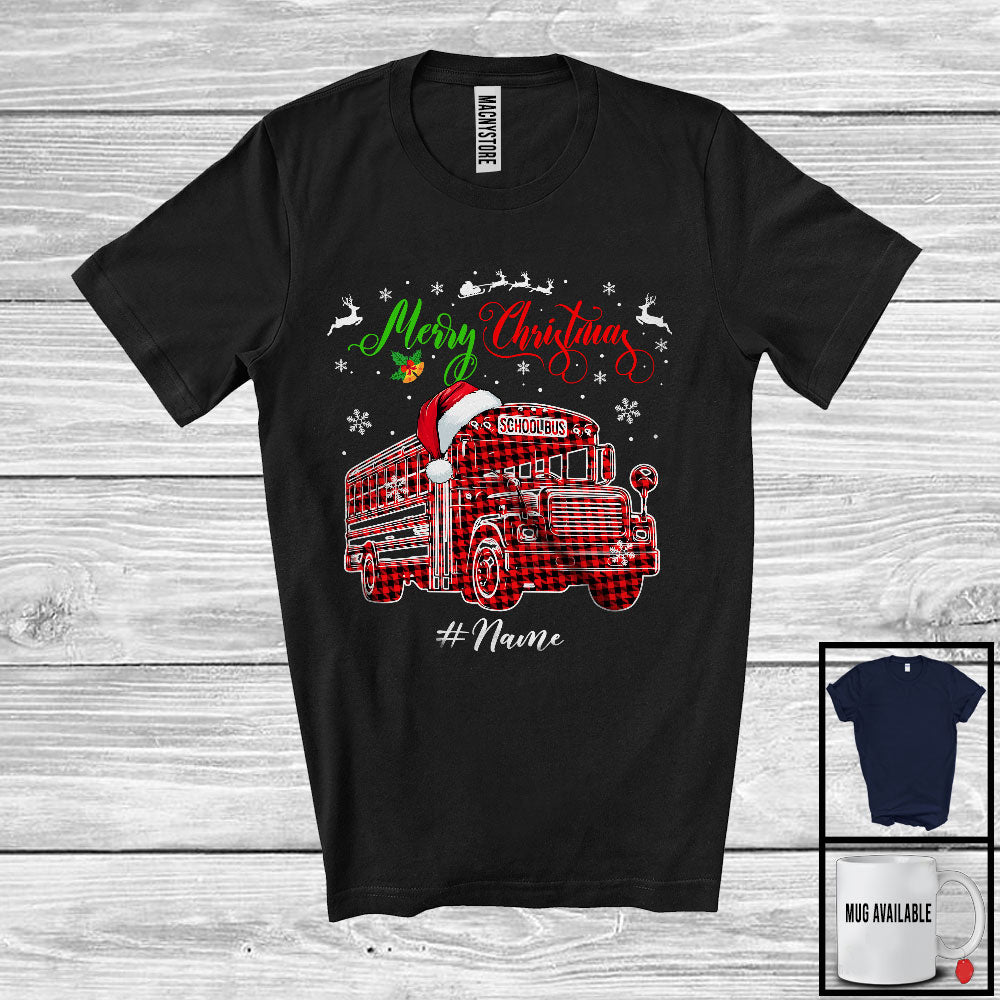Personalized Merry Christmas; Proud X-mas Plaid Custom Name School Bus Driver; Jobs Family T-Shirt
