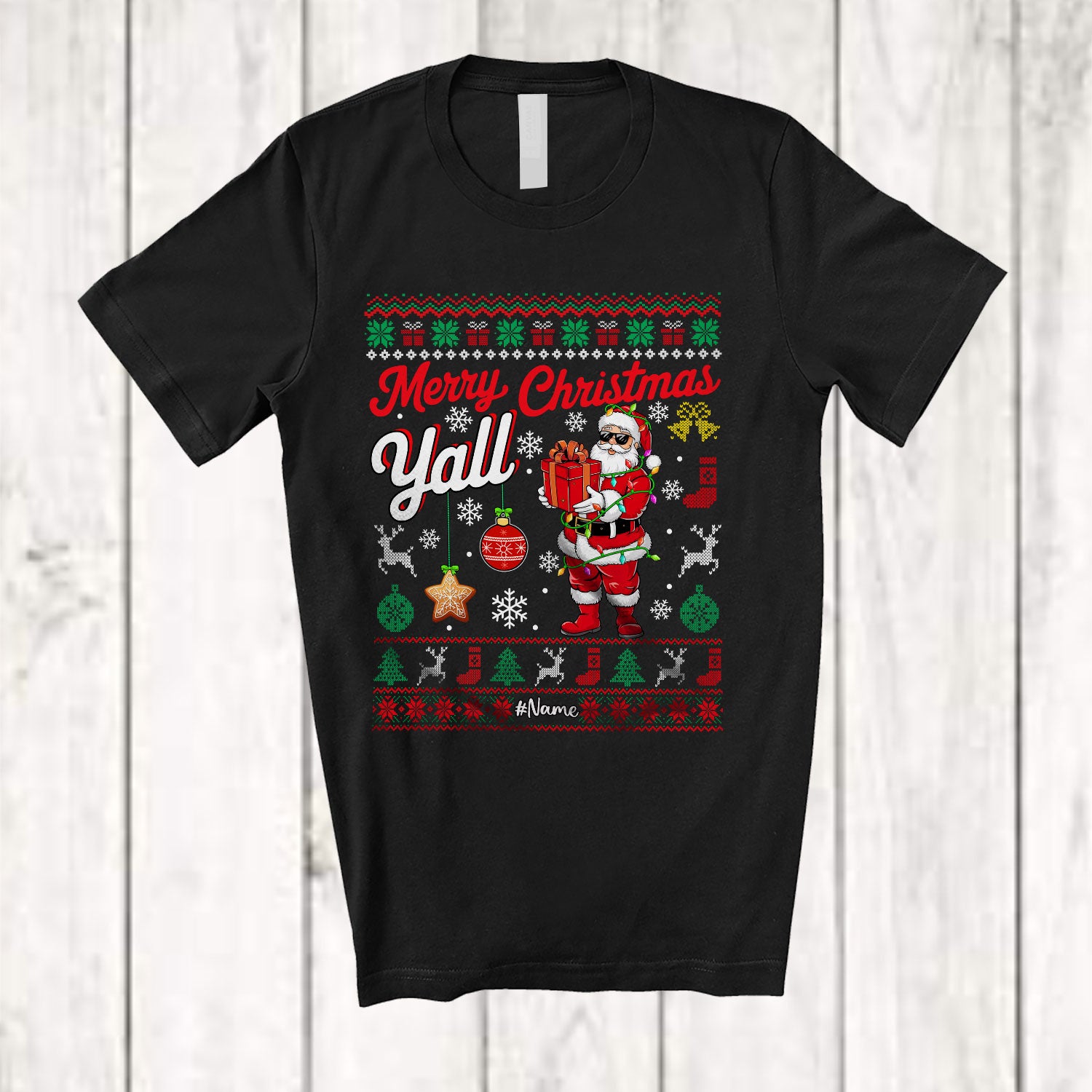 Personalized Merry Christmas Yall; Cheerful Custom Name Santa; X-mas Sweater Lights Family T-Shirt