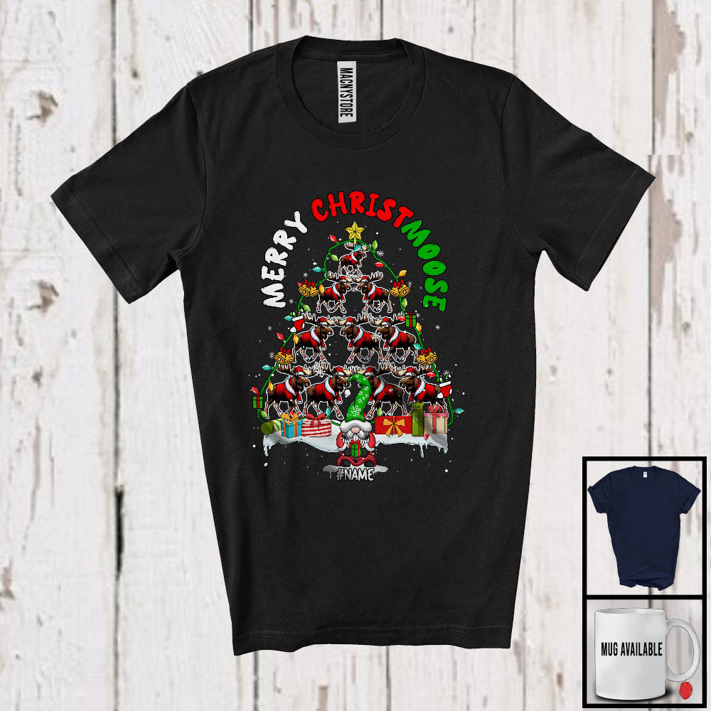 new MacnyStore - Personalized Merry Christmoose; Amazing Christmas Lights Santa Moose; Custom Name Family T-Shirt – Macnystore