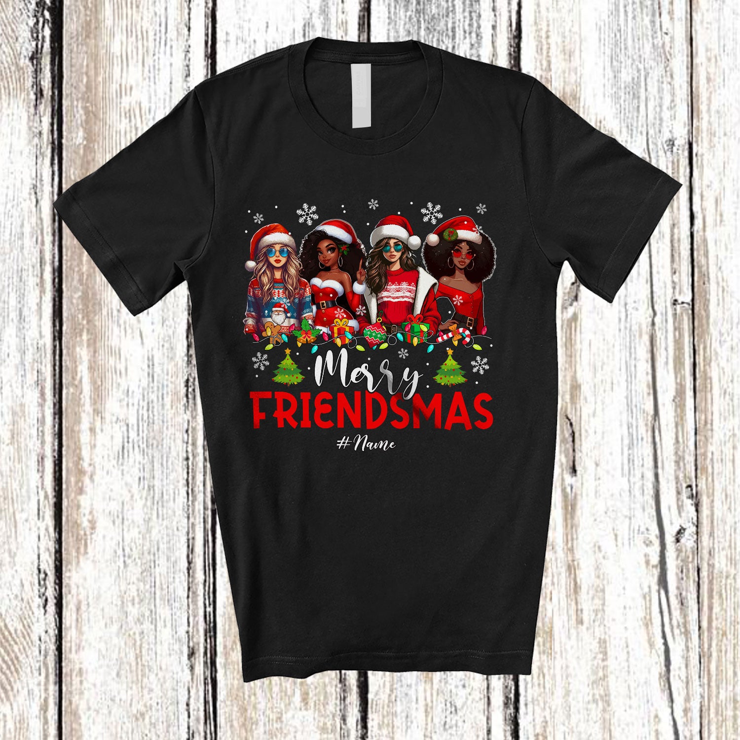 Personalized Merry Friendsmas; Amusing Christmas Custom Name Santa African Women; Family T-Shirt