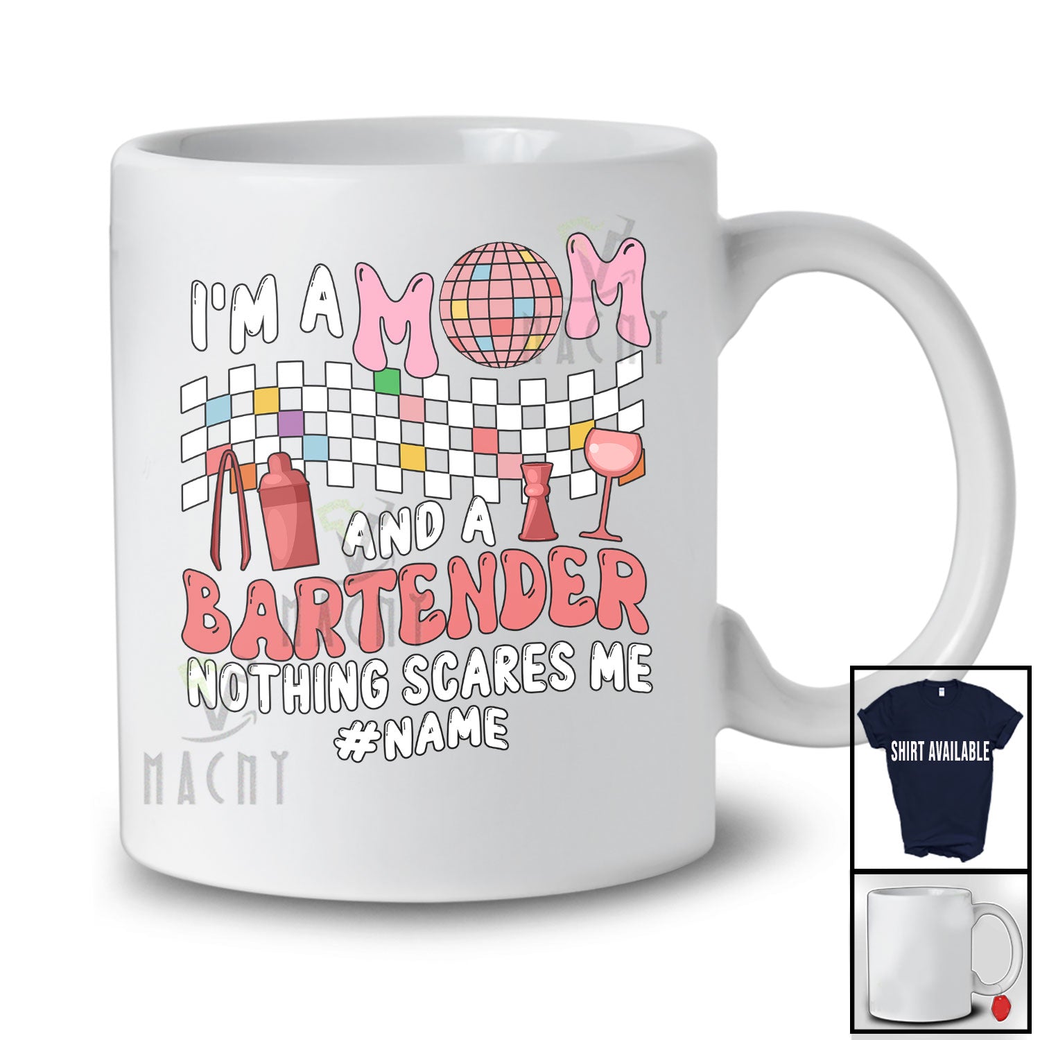 The Personalized Mom Bartender Nothing Scares Me; Proud Mother's Day Custom Name Family Jobs T-Shirt was built with people like you in mind. Something to keep you happy. Every. Single. Day.